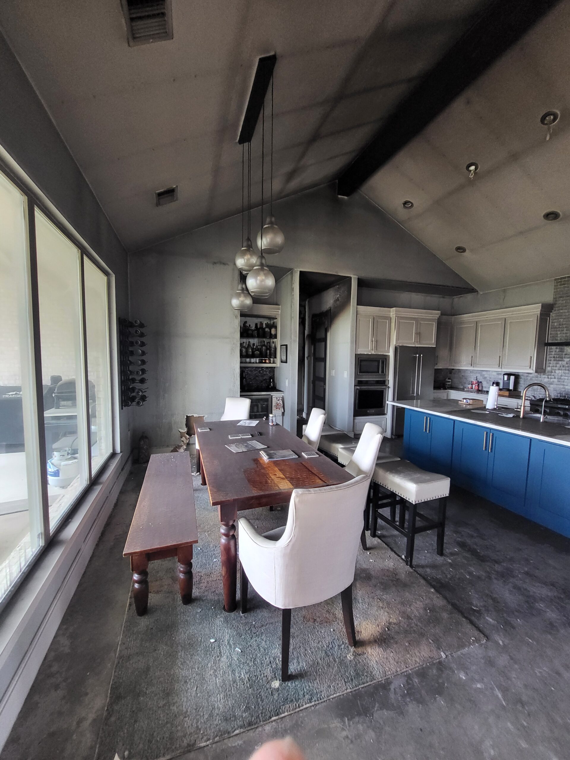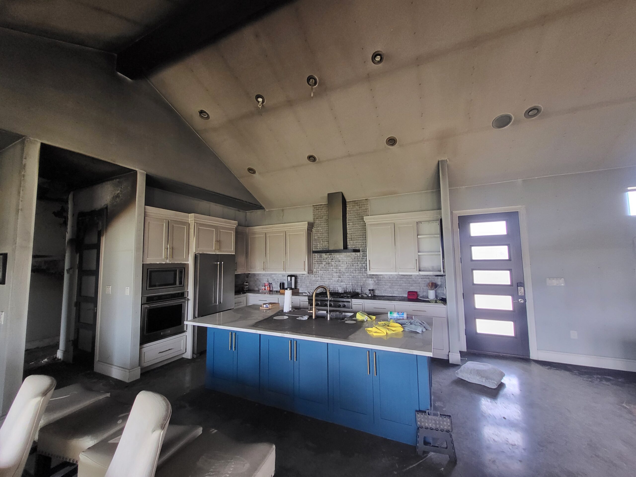 After a lithium flashlight battery caught fire and completely damaged the interior of this lake house in Azle, TX, our team came to help. We fully gutted the space and rebuilt it from the ground up, transforming it into a modern, lake-themed home that our clients can love again.