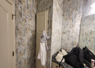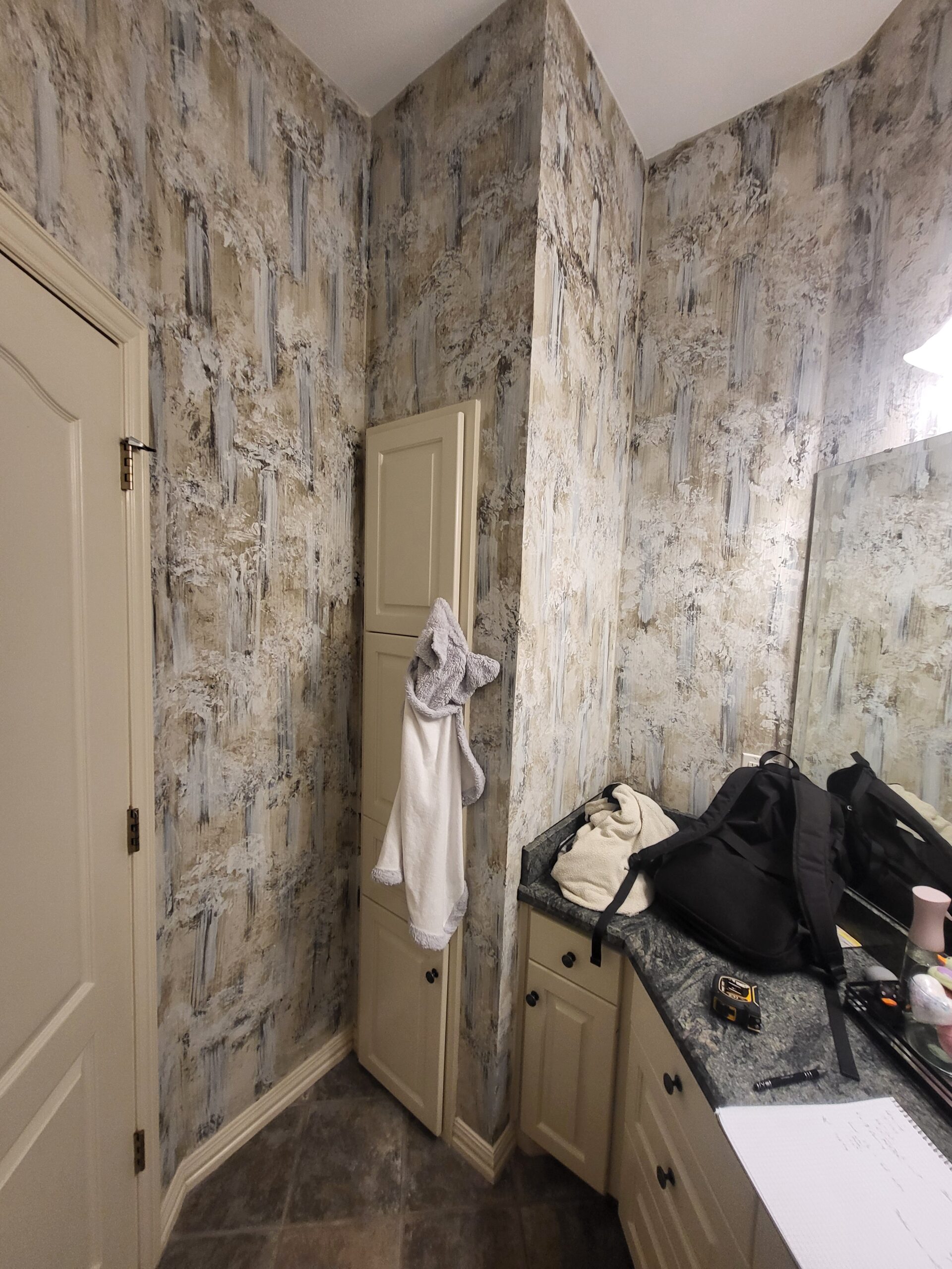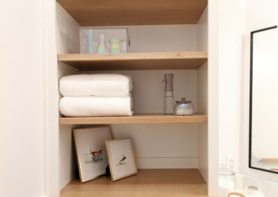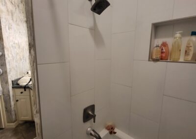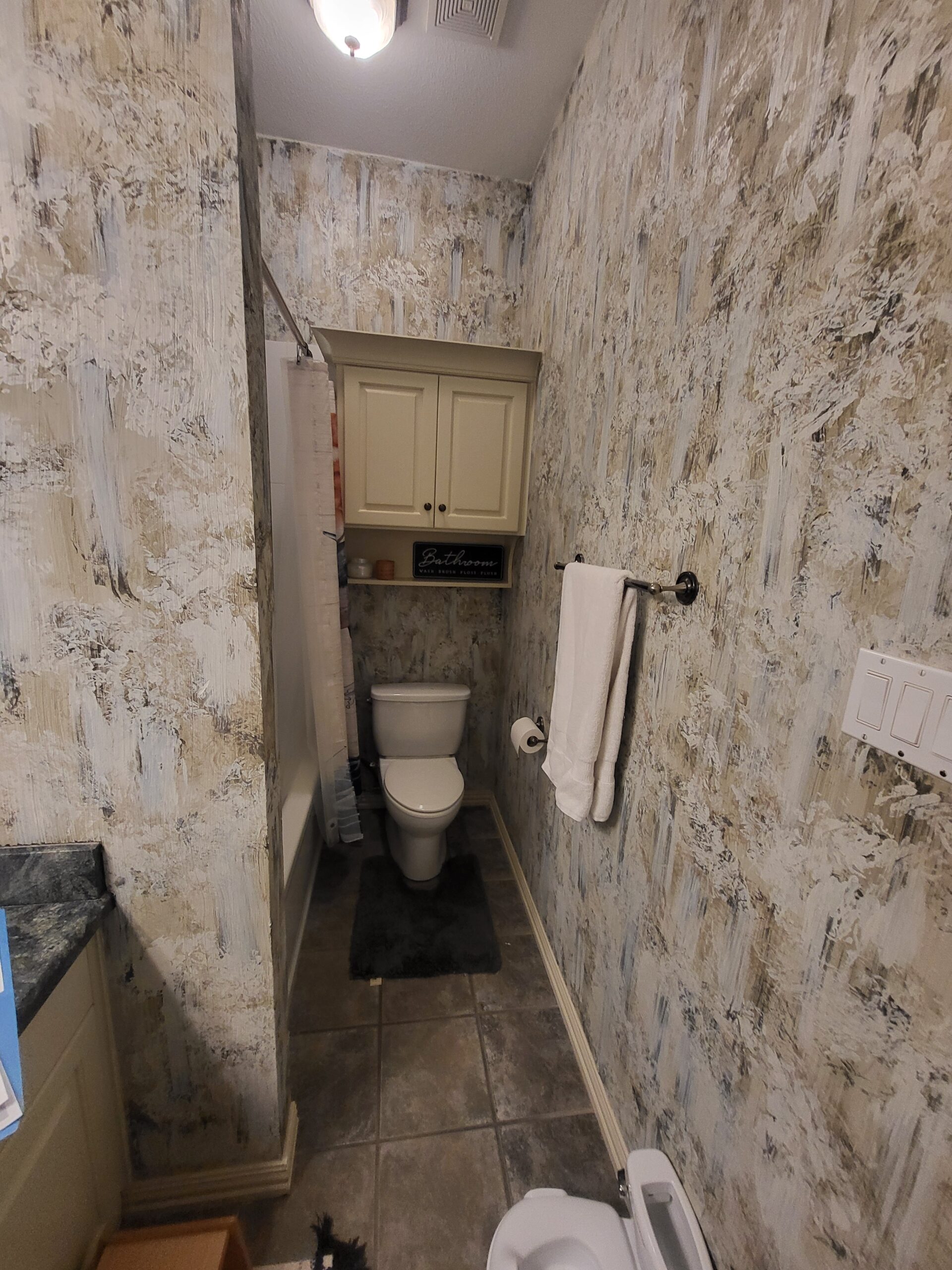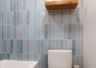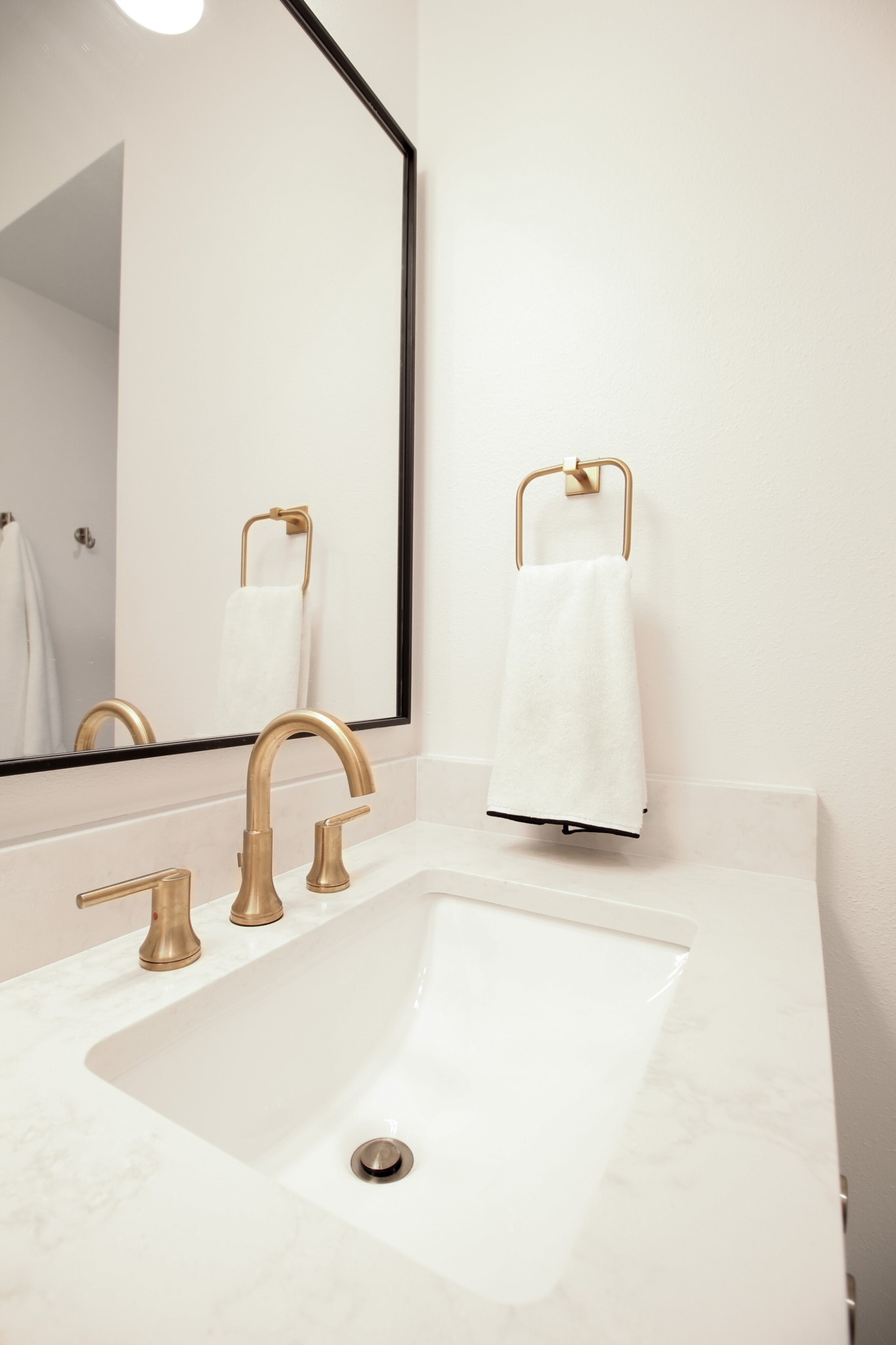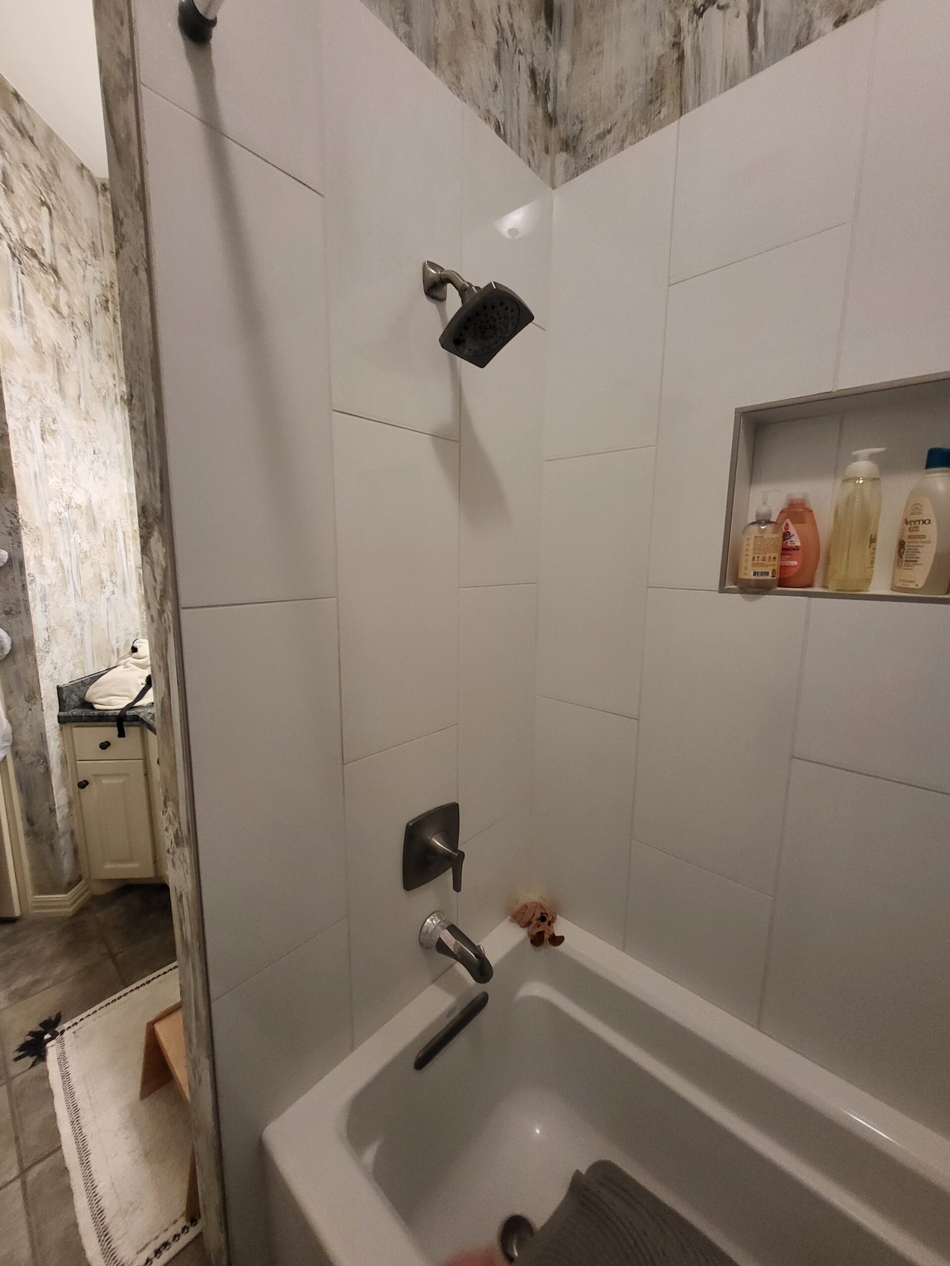 This family in Bedford was ready to improve their dark and outdated bathroom. Because this space was shared by two young children, they decided to transform the space into something bright, fun, and more age-appropriate. The loud, beige wallpaper was the first thing to go. We replaced tile floors, created a custom cabinet configuration for the angled wall, and installed quartz countertops. The new shower tile wraps around the toilet area and into the shampoo niche. We love the modern tile layout, gold fixtures, and natural wood accents in this room. The transformation is incredible!