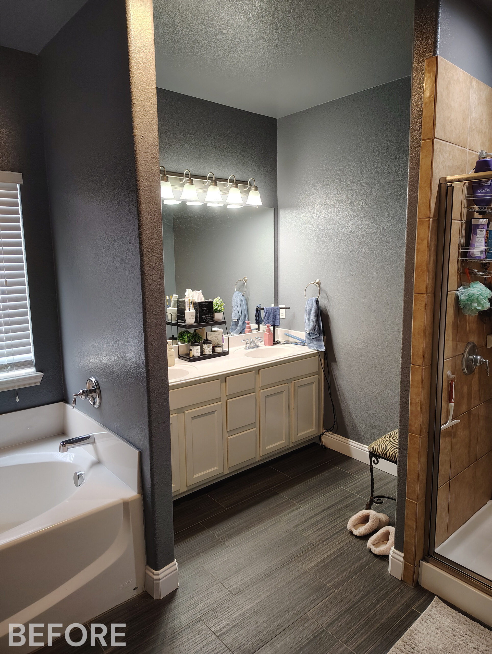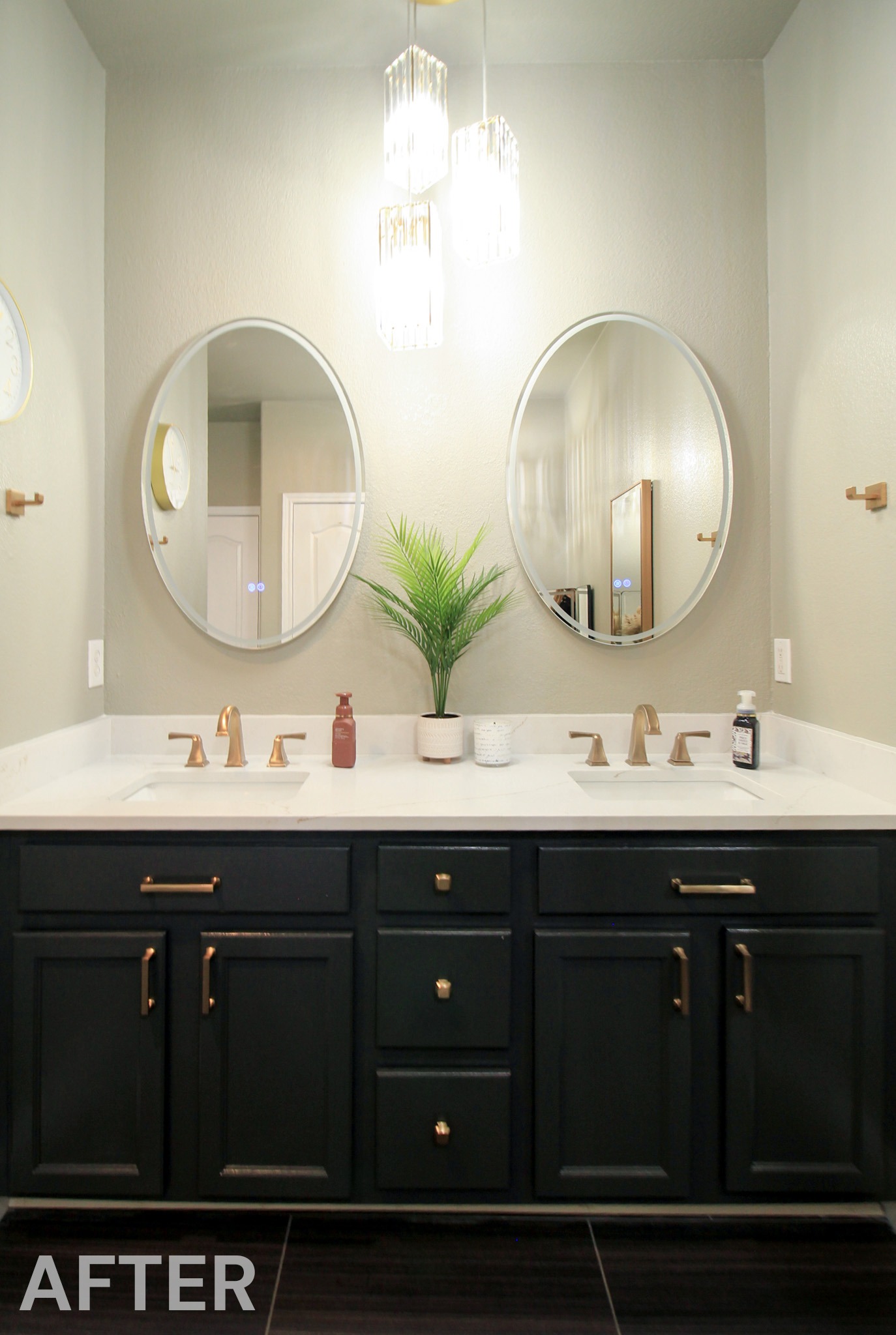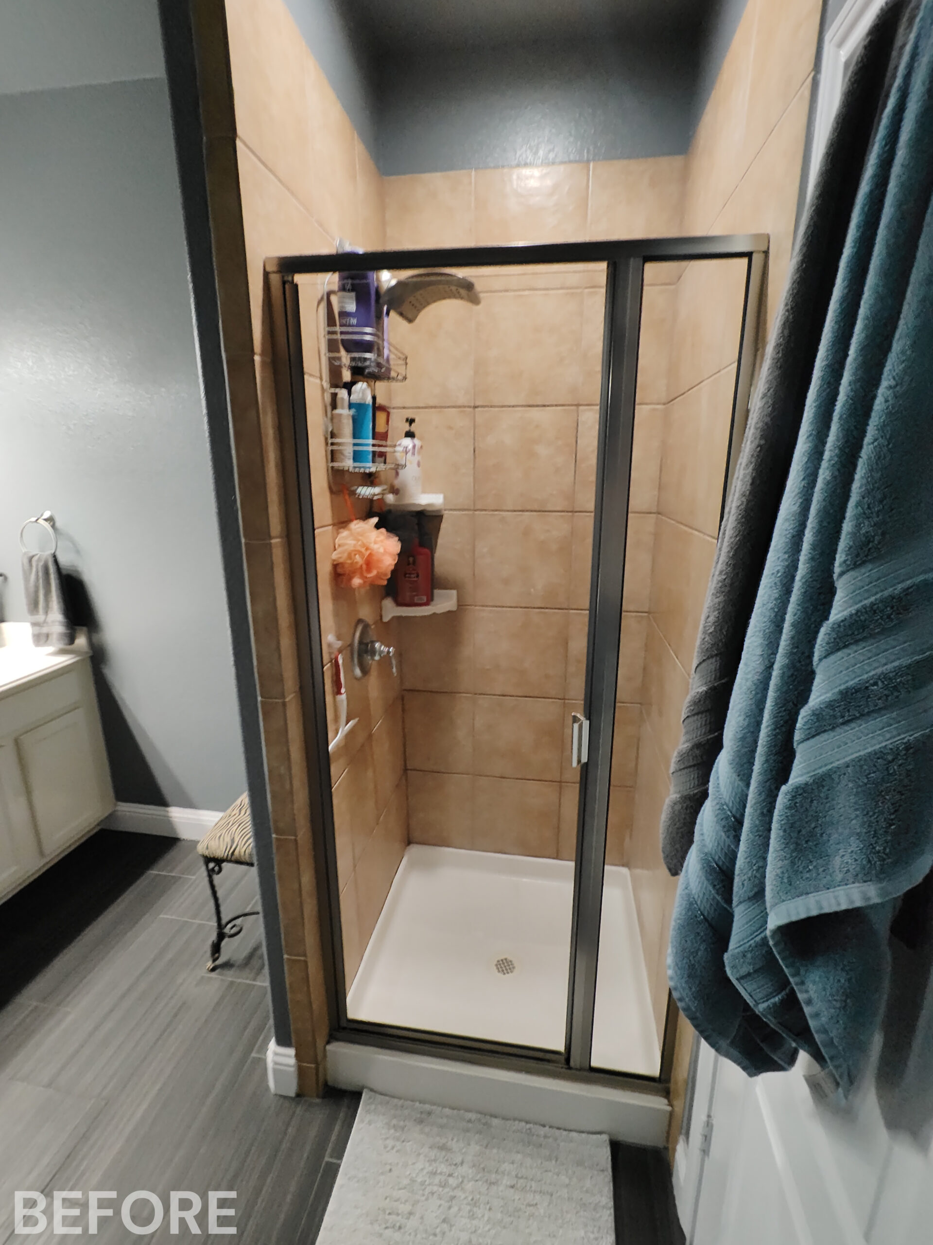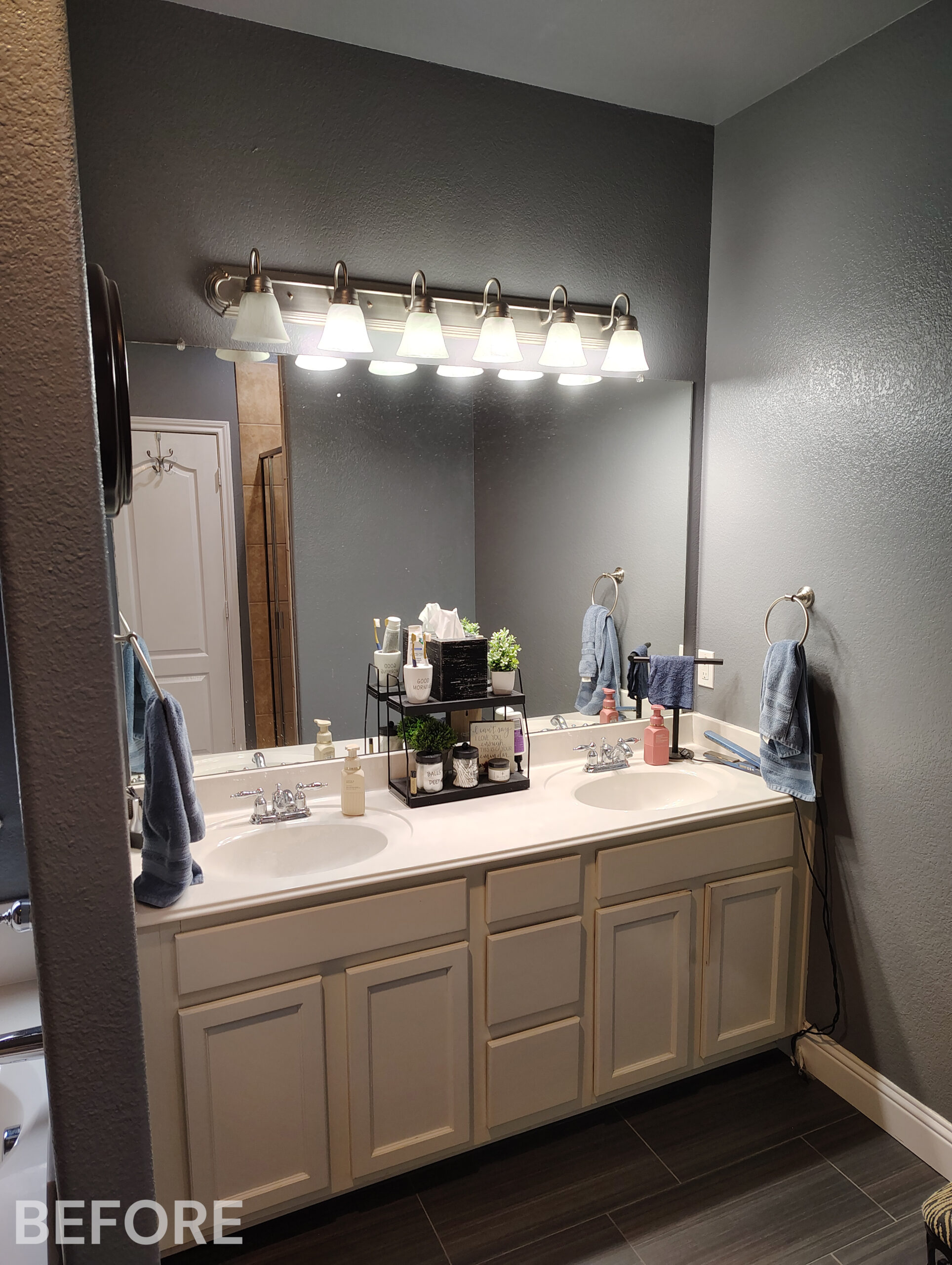 We removed the existing shower and replaced the bathtub with a spacious, custom walk-in shower. The homeowners chose to keep their original tile flooring and cabinetry, so we gave the cabinets a fresh coat of paint to match the updated aesthetic. New quartz countertops, stylish faucets, sleek mirrors, and updated light fixtures brought the whole space together. The result is a beautiful, functional bathroom that feels brand new while staying within budget.