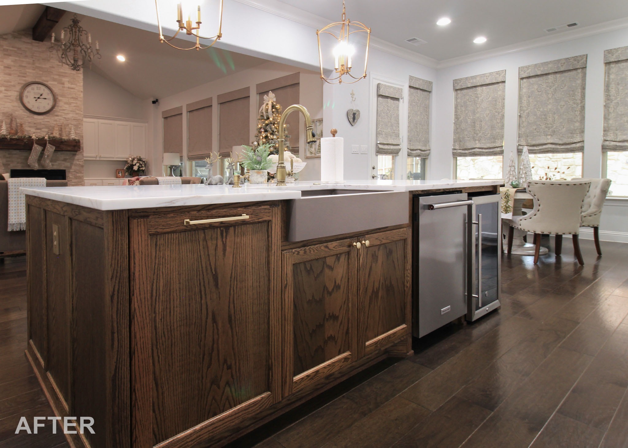 The “before” photos of this kitchen aren’t as outdated as some we’ve remodeled, but the changes resulted in a space that feels less builder-grade and much more cozy and unique.