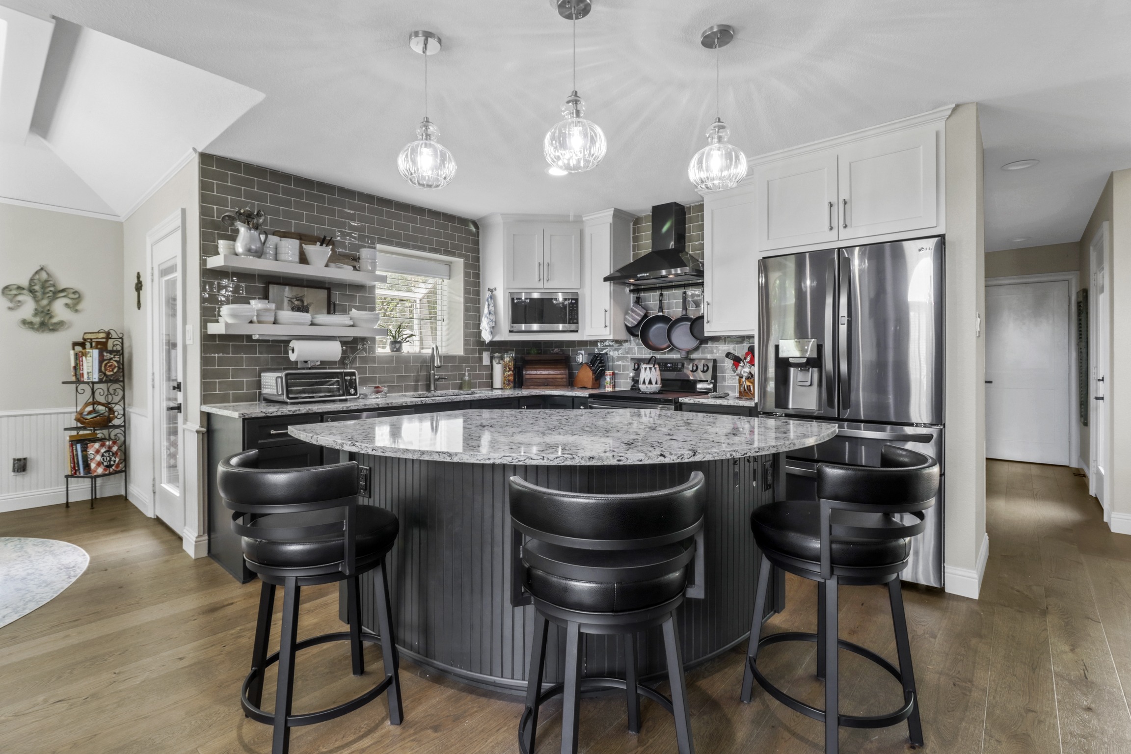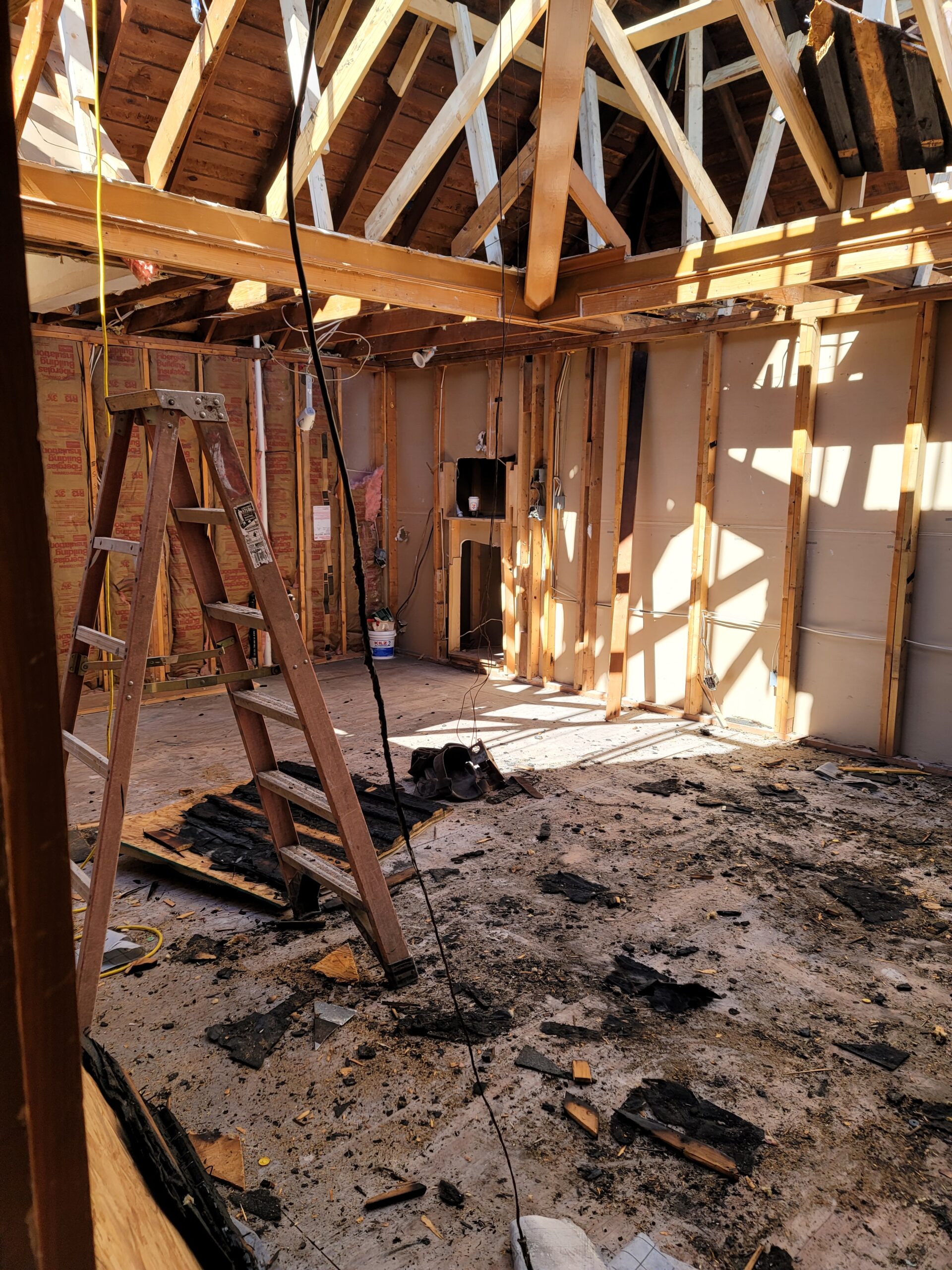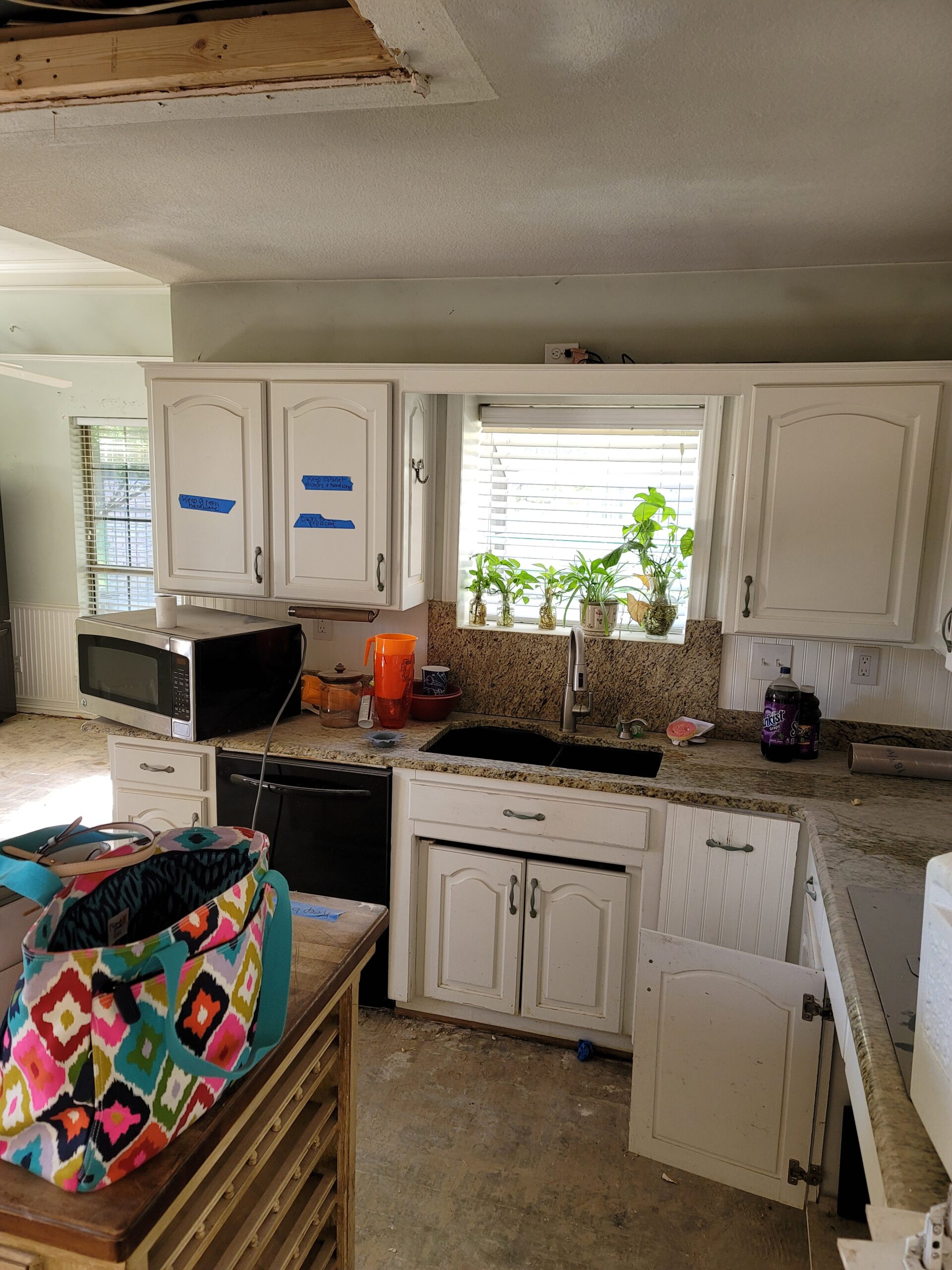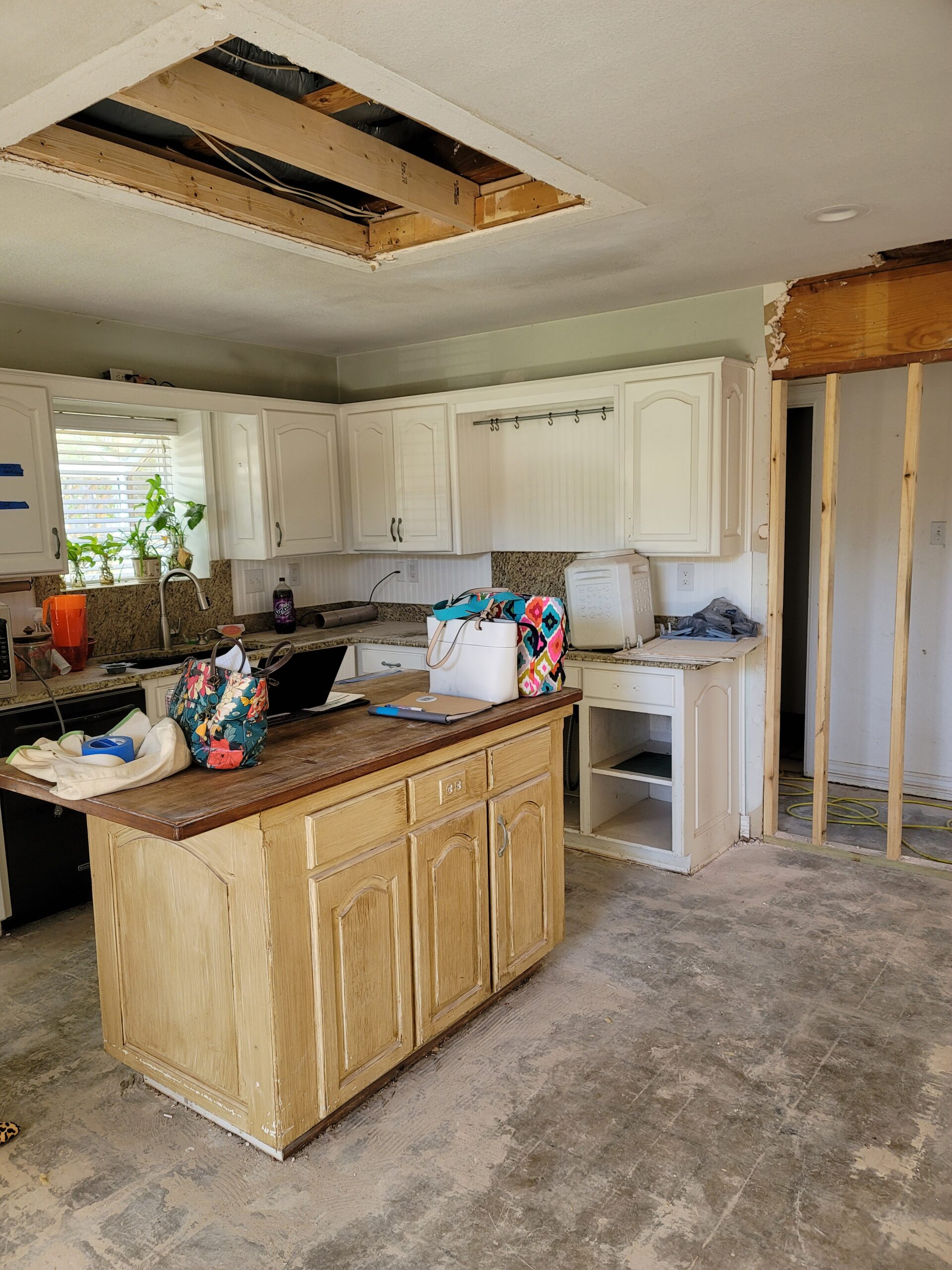 A fire broke out in this client’s attic in Colleyville. The fire caused a large part of the upstairs to be reframed, reinsulated and reworked, so the clients took it as an opportunity to renovate their entire home. These clients had been taken advantage of by another construction company and were looking for a trustworthy contractor, so an external designer brought us into the project. Downstairs, we removed the wall separating the kitchen from the living area and built a new 12-foot stacked stone fireplace. In the kitchen, we installed custom cabinets, a custom curved island with beadboard accents, granite countertops, and a subway tile backsplash. We opened up the dining room to the kitchen and installed a dark board and batten wainscoting. In their primary bathroom, we build a custom 10′-0″ shower with a drop in tub next to it. We painted the existing vanities and installed new quartz countertops.