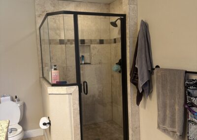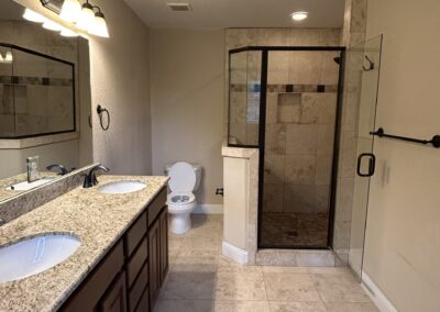 In this master bathroom in Dallas, we left everything in the same location, but updated all the materials and fixtures.