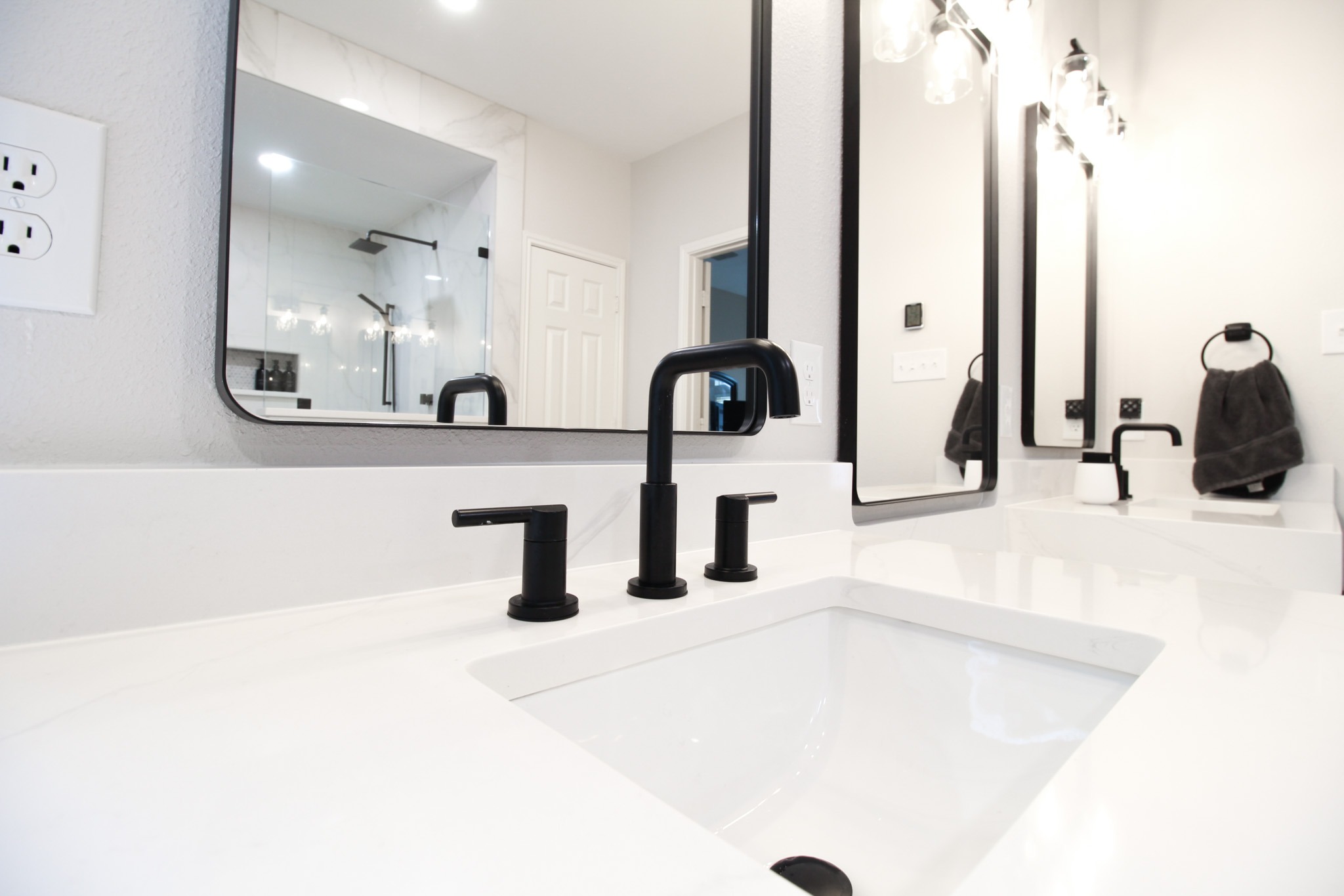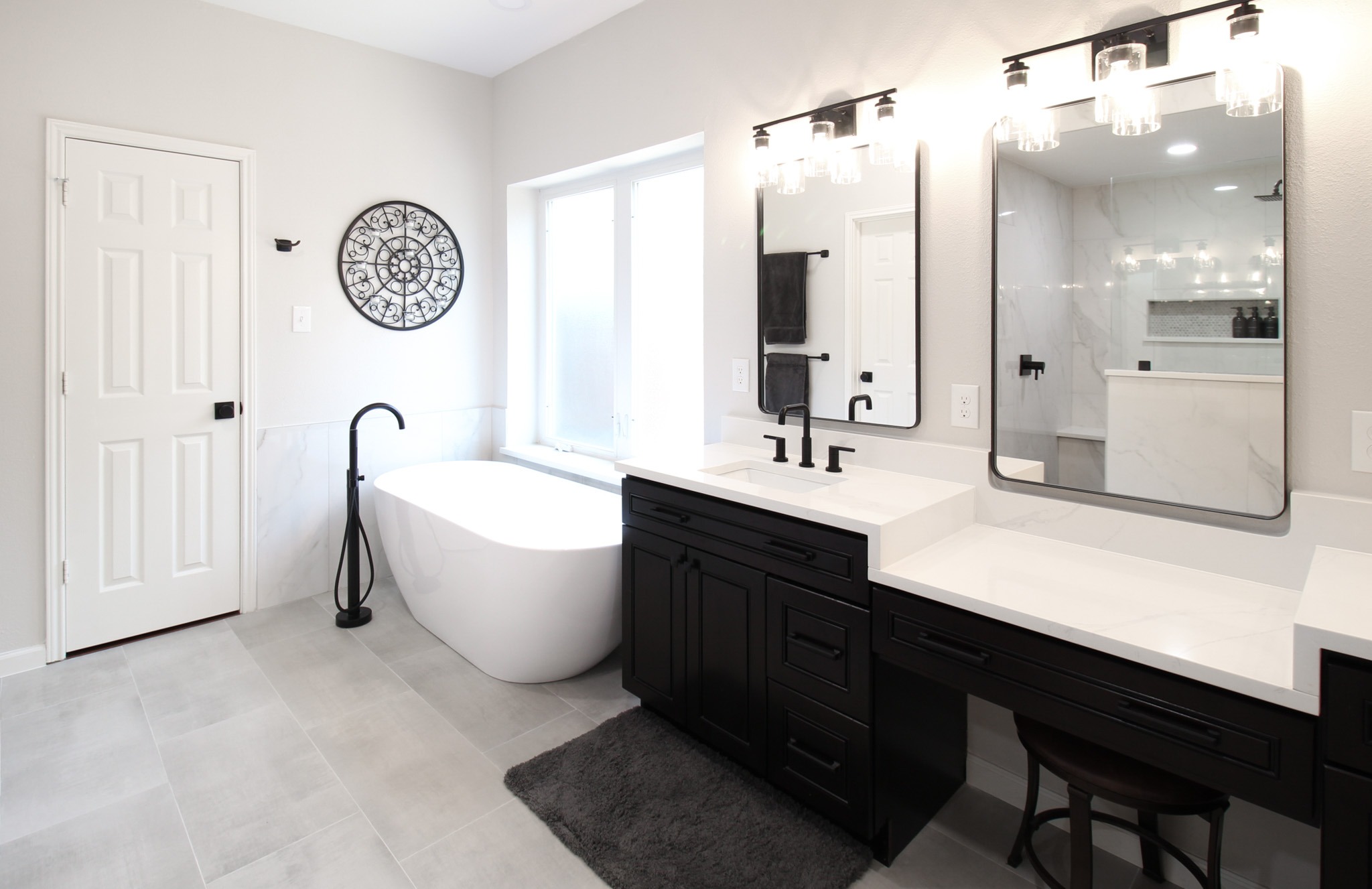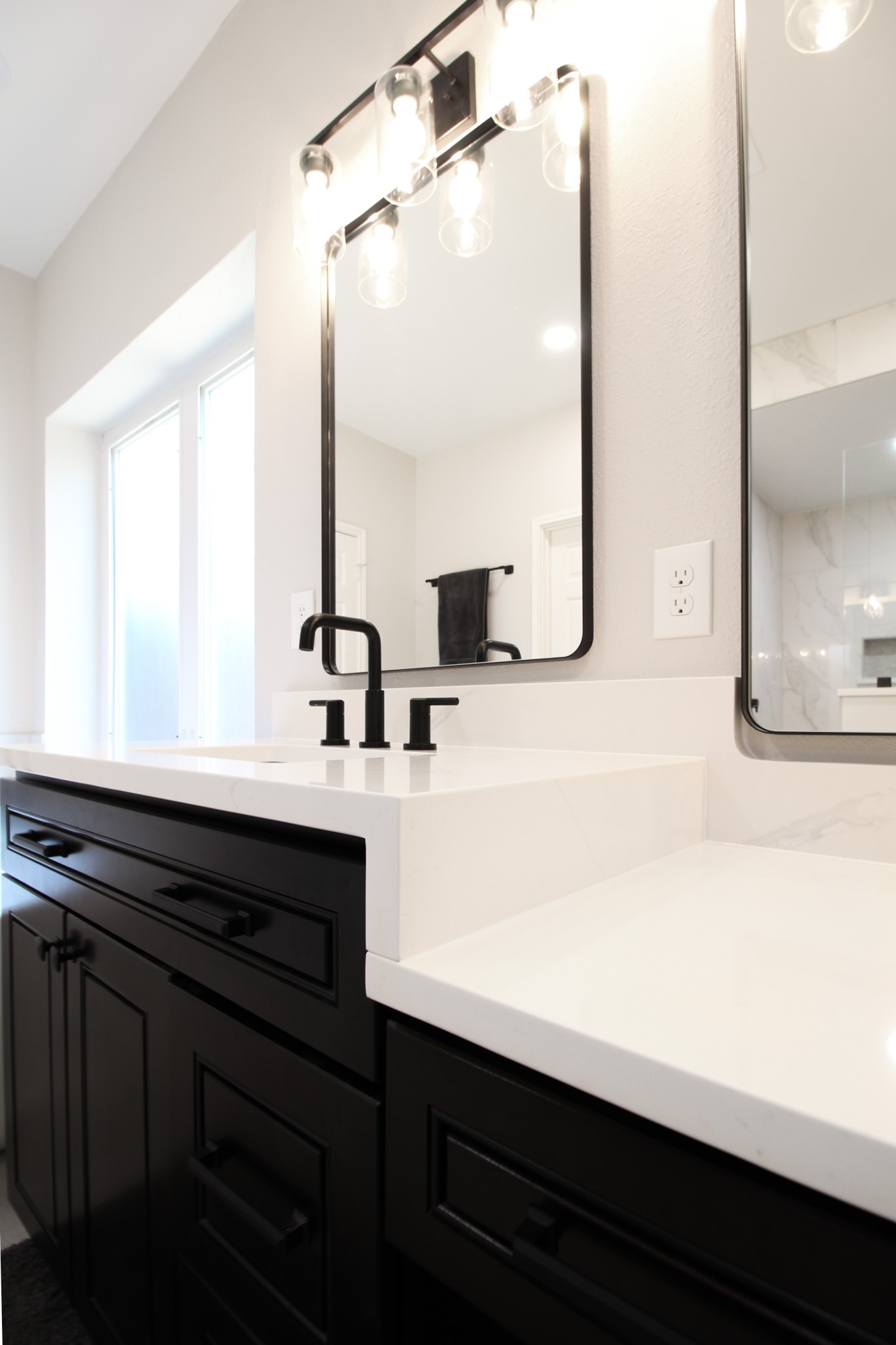 We loved working with this couple in Flower Mound to give them their dream bathroom and movie room. They started the process with our advanced design package where we ironed out the details of their project. This allowed them to customize every aspect and see exactly what they were getting (with some help from the design team!).