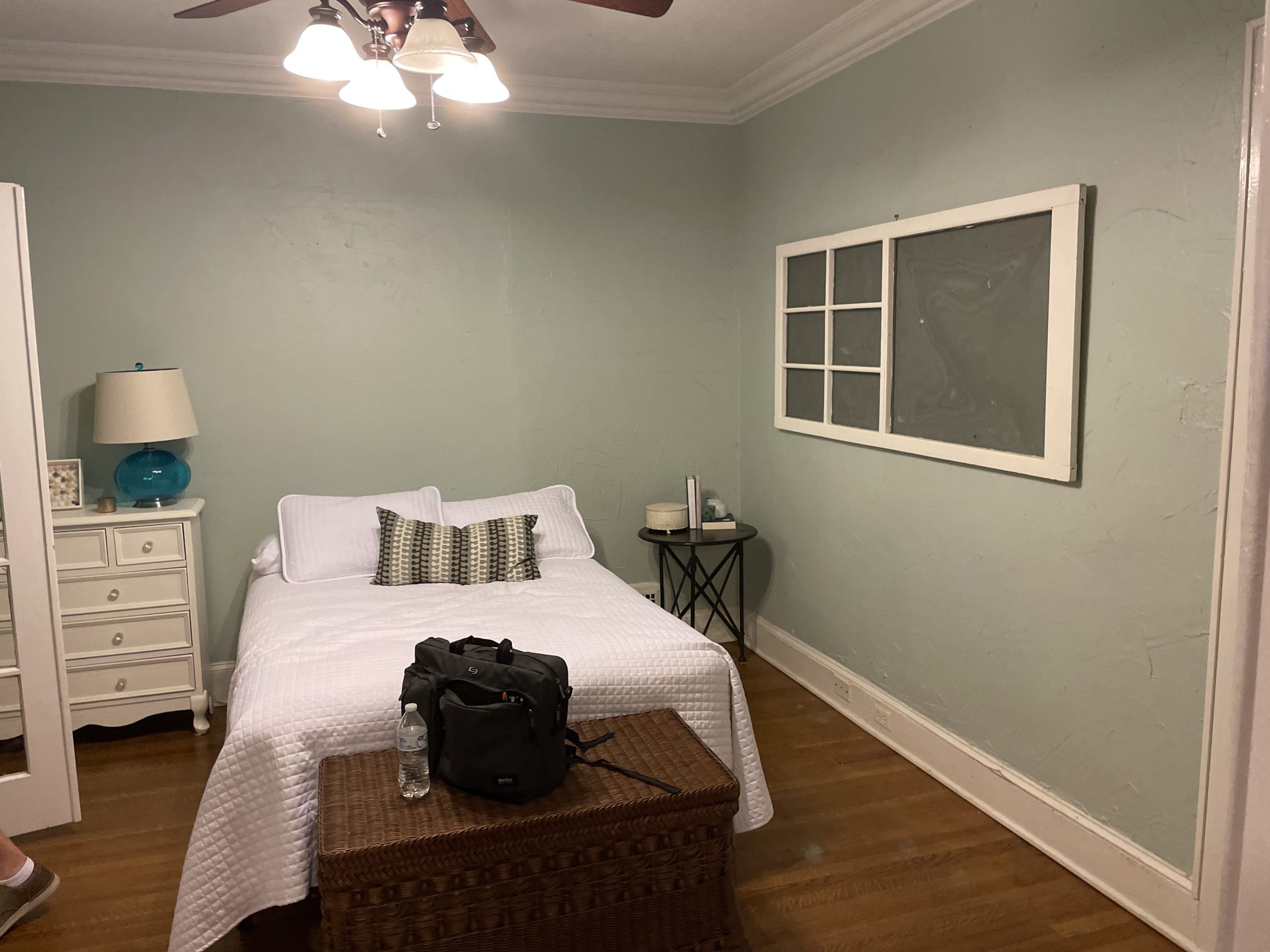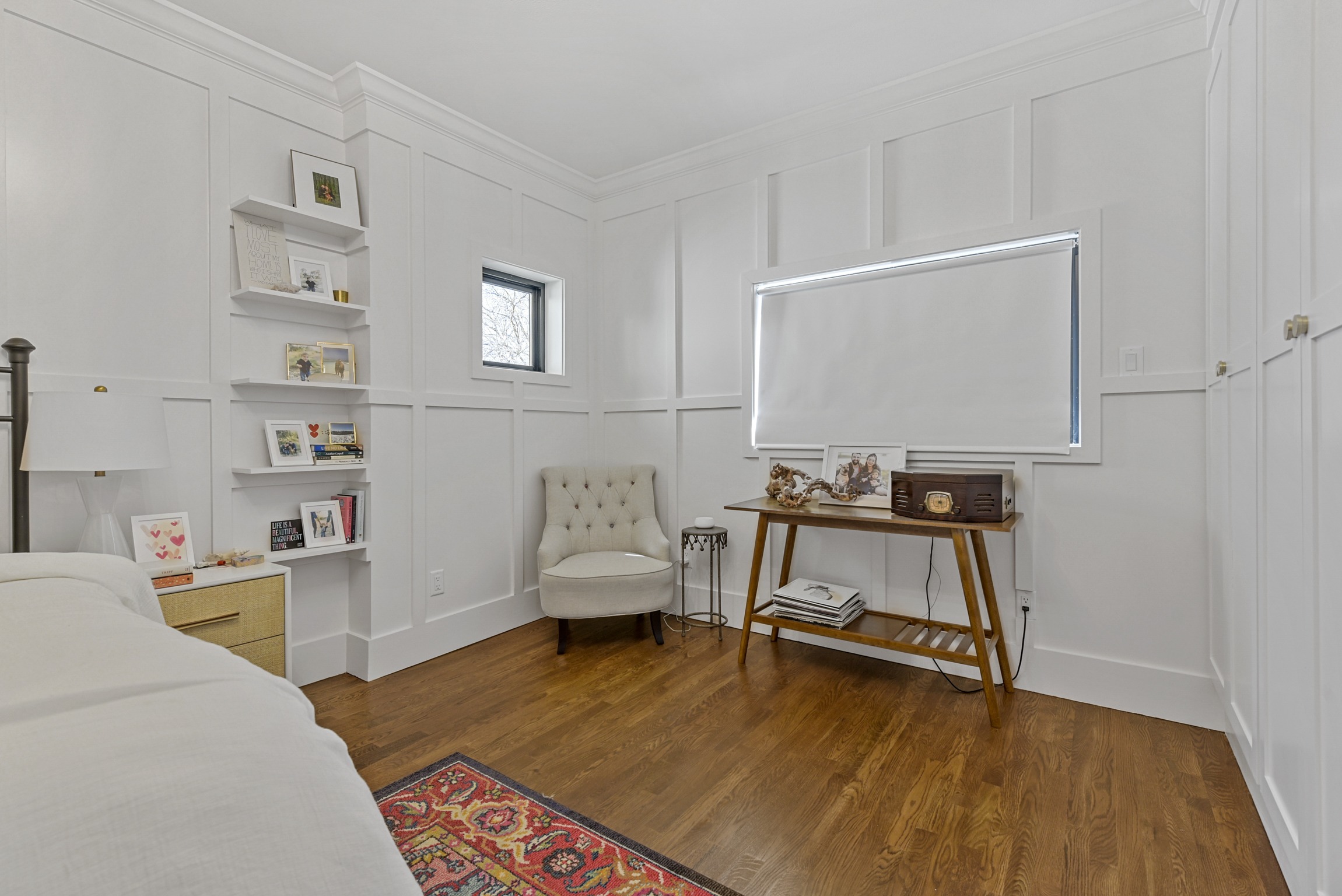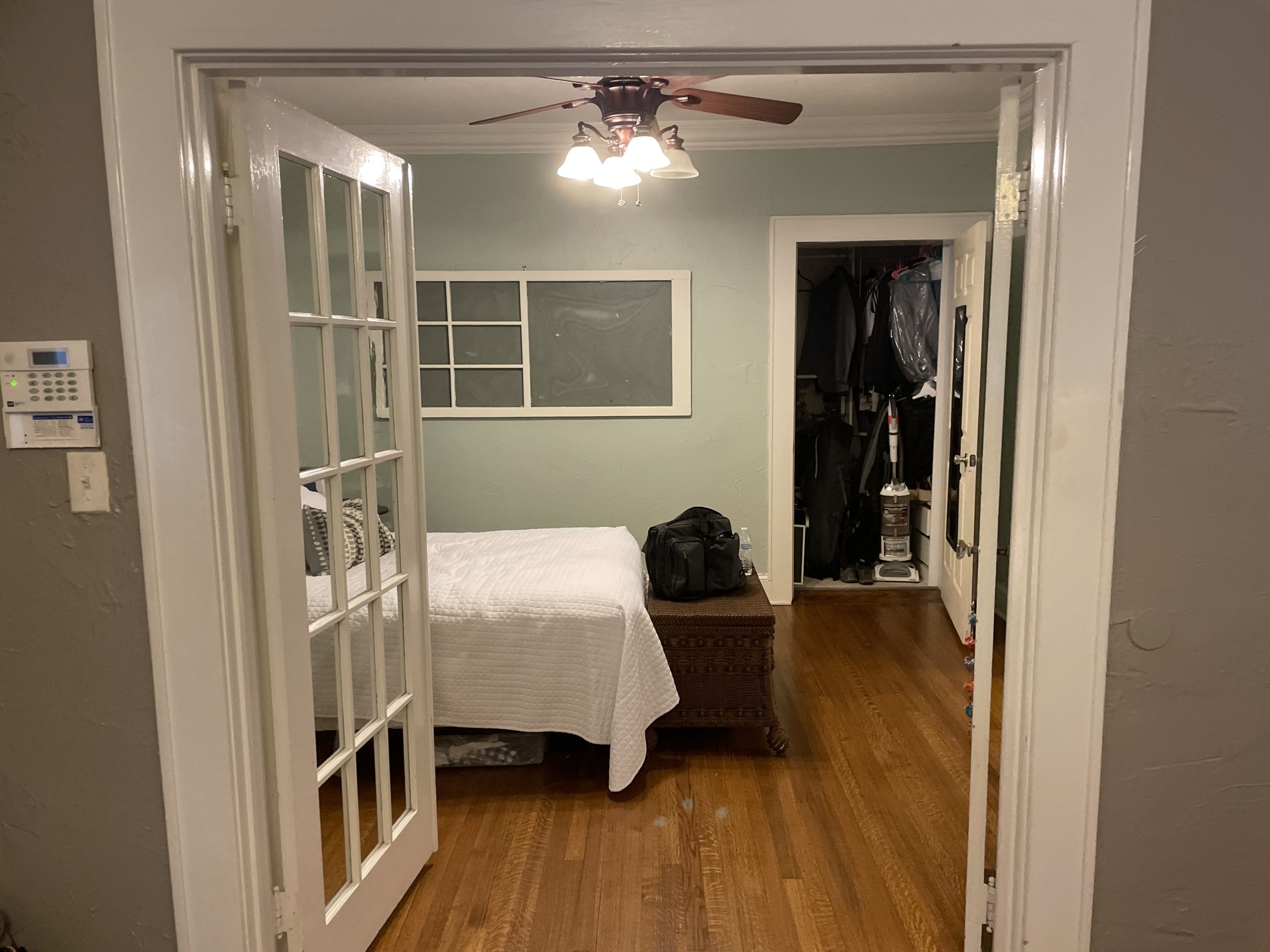 We helped these clients in Fort Worth add some square footage to an originally tiny bedroom. We moved the exterior wall back and added a window. They worked with an outside designer who encouraged the board and batten molding on the walls. This room also has a custom-built master closet and new hardwood floors to match the rest of the house.