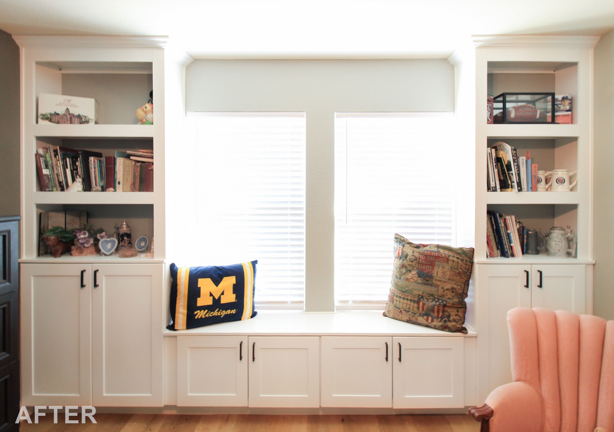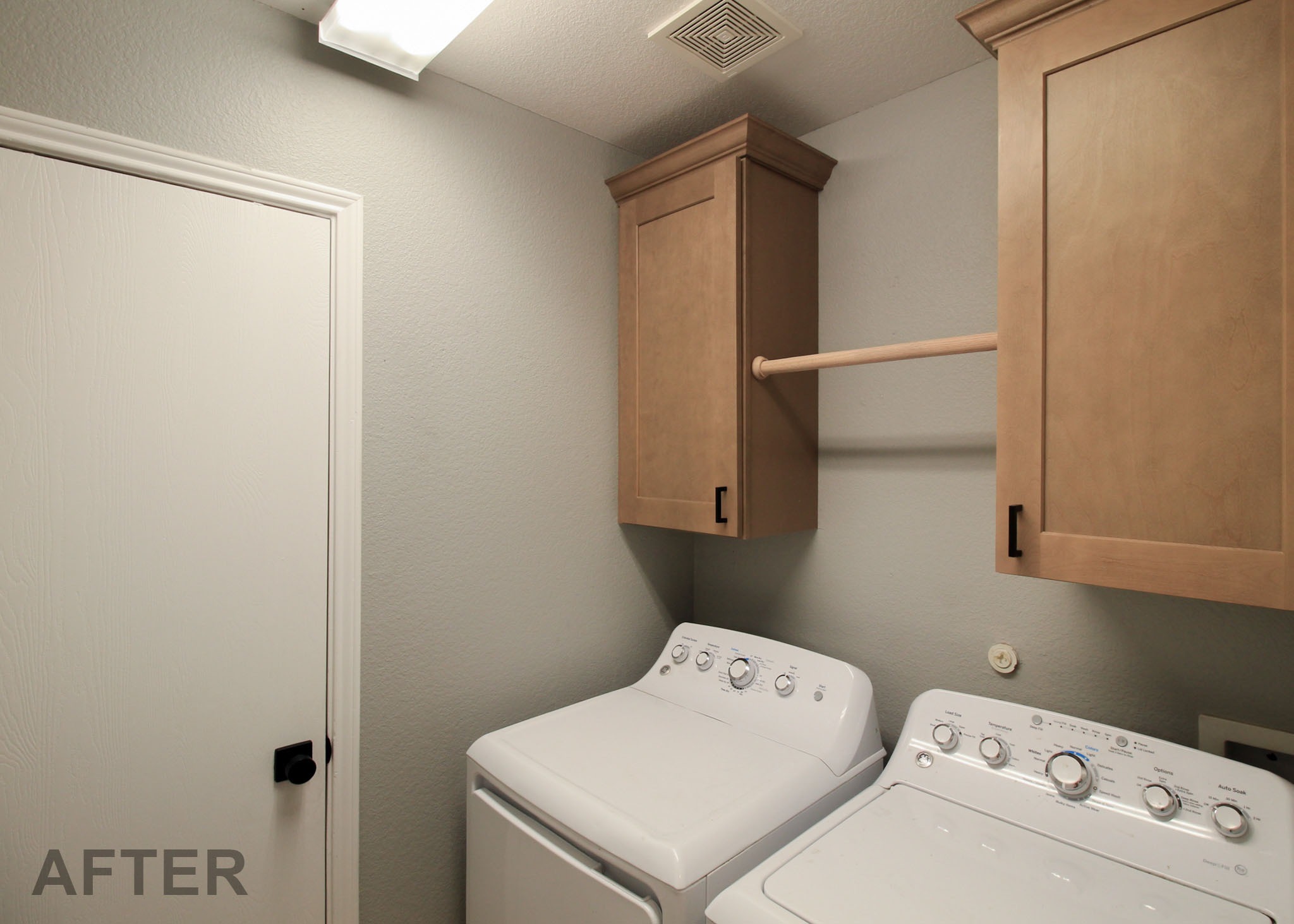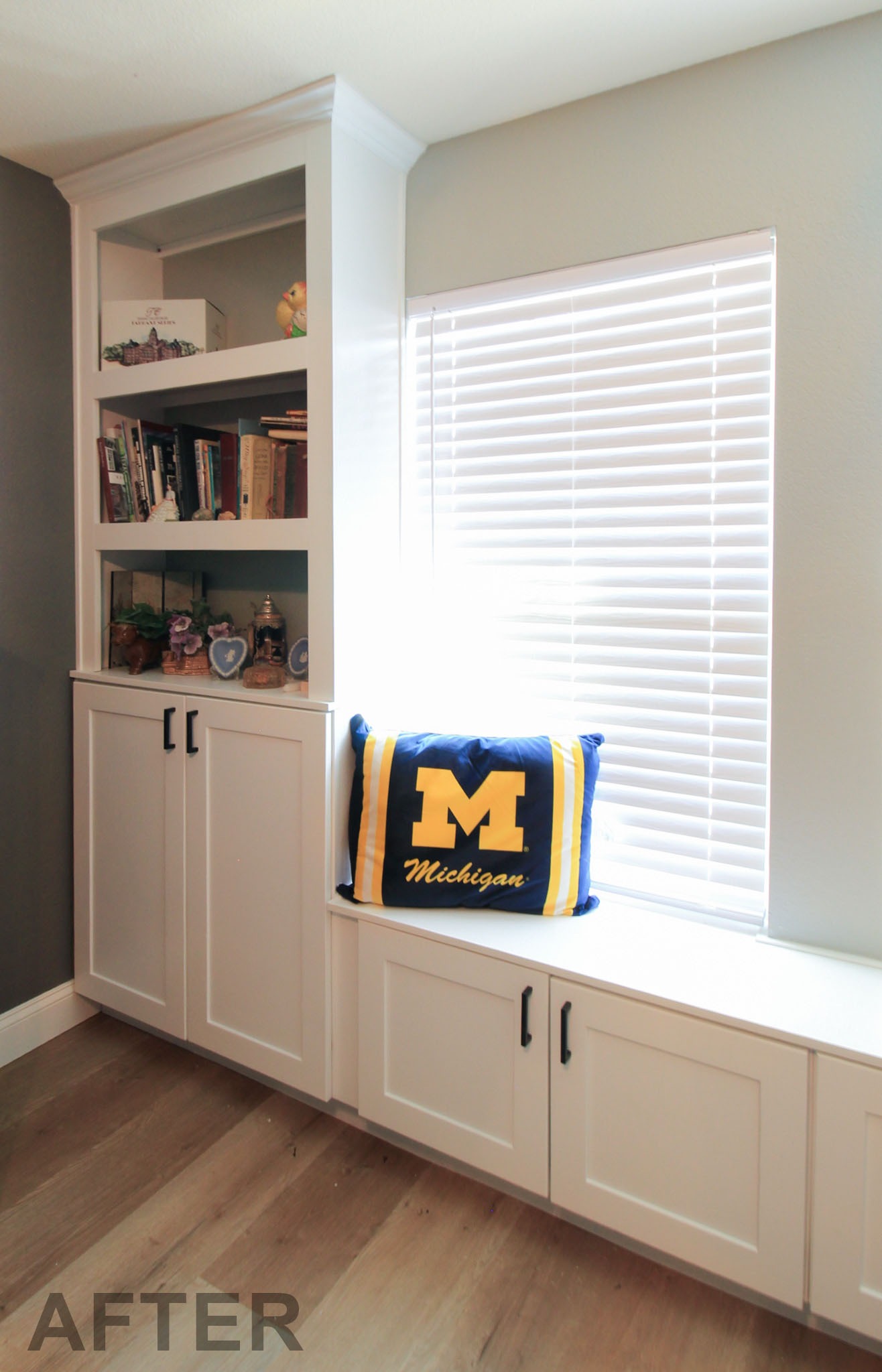 While we were remodeling, our clients decided they wanted to add cabinets in other rooms in their house. We added a window bench in their home office, and extra wall cabinets in their laundry room!