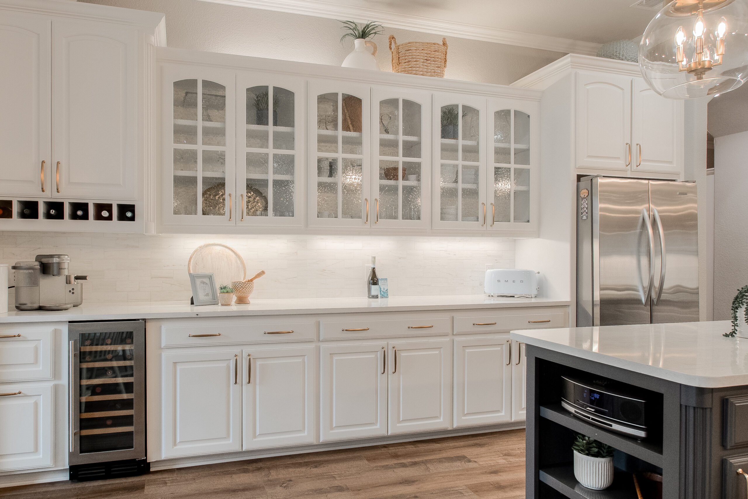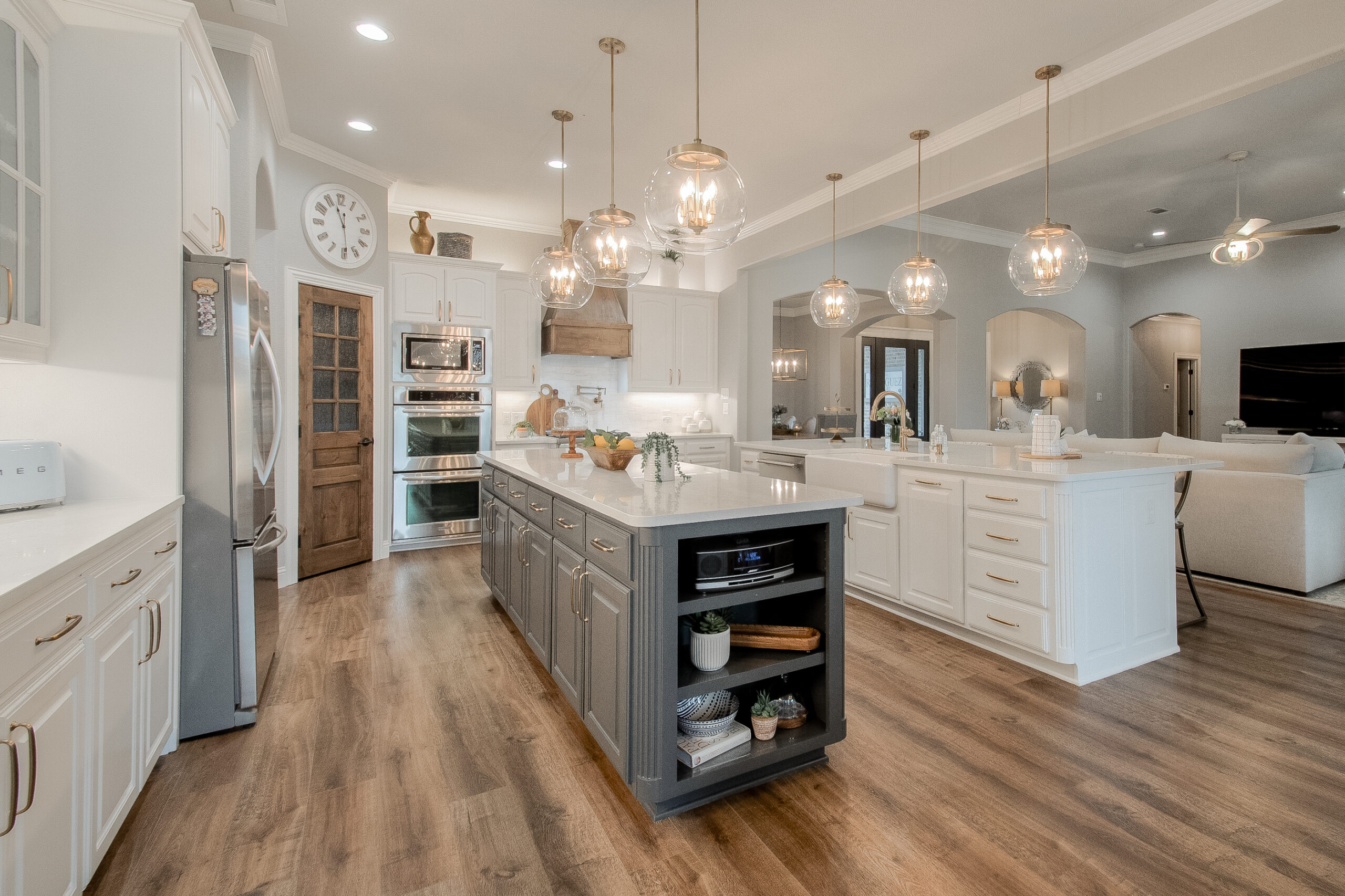 Our clients in Burleson were ready to say goodbye to their dark, Tuscan-style kitchen and create a space that felt brighter, more open, and perfect for hosting. The original layout was closed off from the family room, so the first step was removing the dividing wall. We kept the existing perimeter cabinets but gave them new life with fresh paint, blending the old with the new. Custom double islands were designed to provide plenty of space for prepping and gathering, and we added a custom vent hood and pantry door to give the space a truly personalized touch. These clients worked with an external interior designer to select materials that would brighten the room.