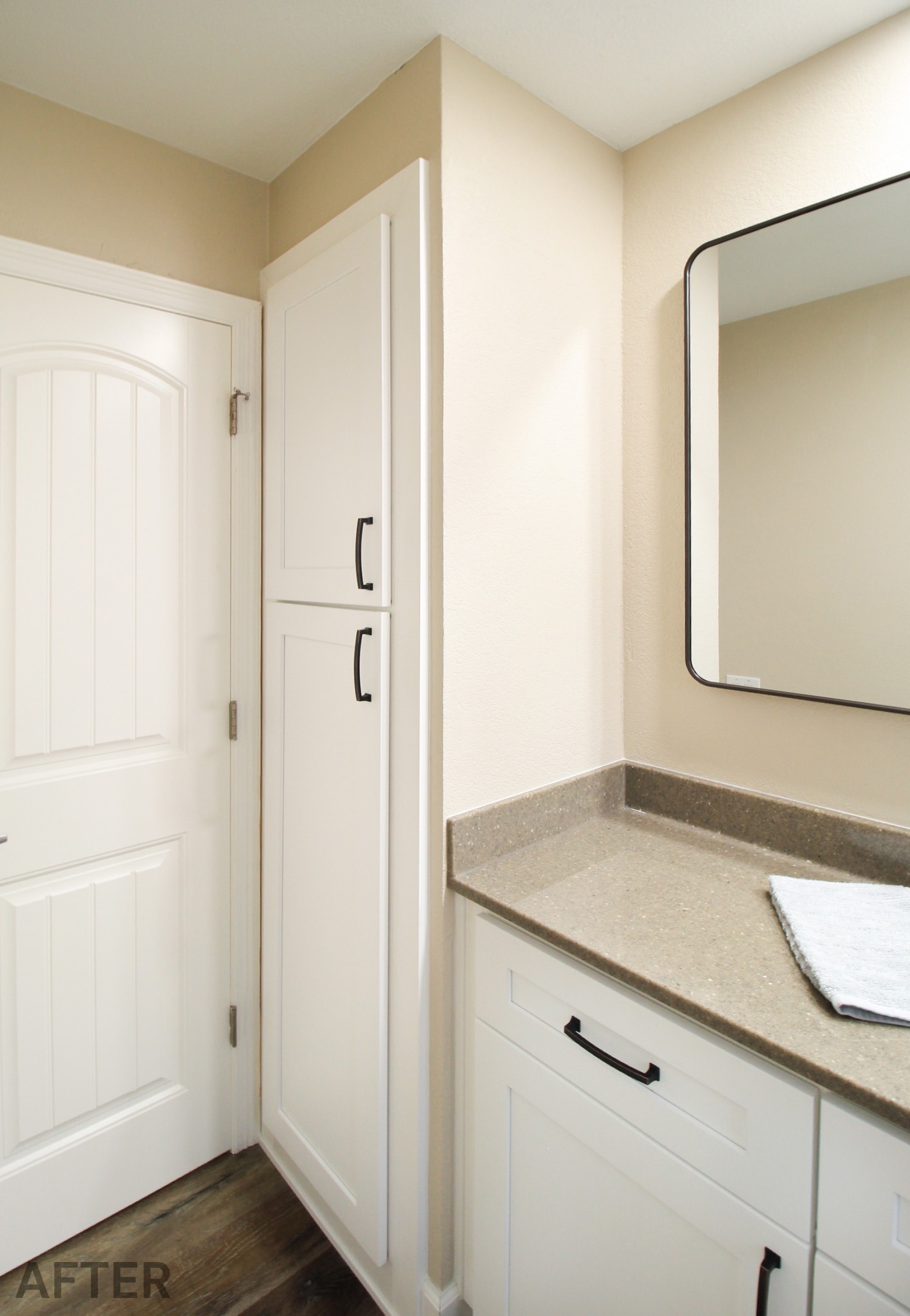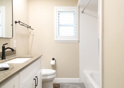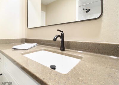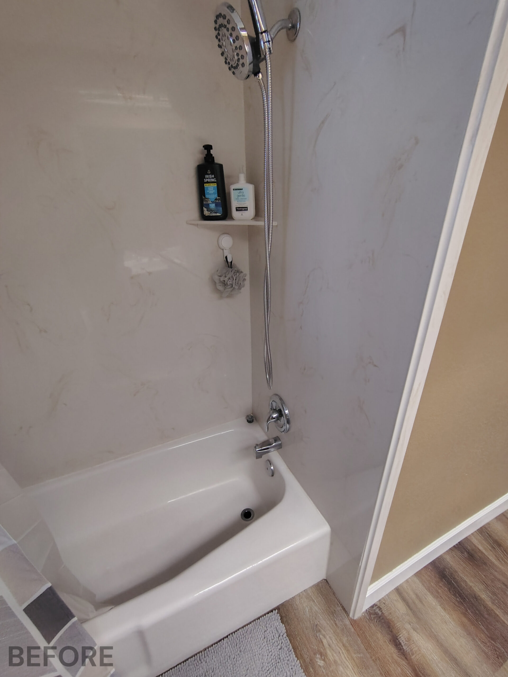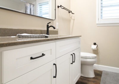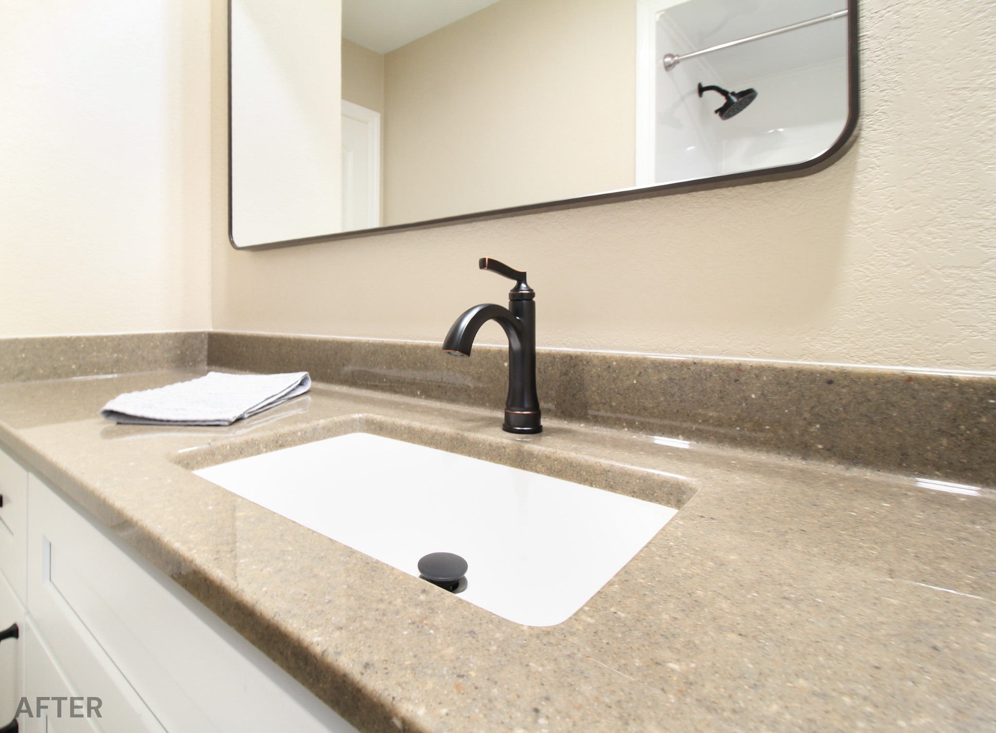 We had the pleasure of remodeling this Mansfield client’s kitchen last year, and were thrilled when they reached out again, this time to update their guest bathroom. We replaced the old tub surround with an Onyx system, a durable solid-surface material that includes built-in shampoo shelves. The countertops were updated using the same material in a complementary color, and the old vanity and linen cabinets were swapped for new, ready-made ones. The homeowners wanted the bathroom to reflect the warm, rustic feel of the rest of their home, so we kept the existing LVP flooring and installed new bronze fixtures and hardware to add contrast and character. We’re so glad we could help bring their vision to life and create a space that feels cohesive and inviting!