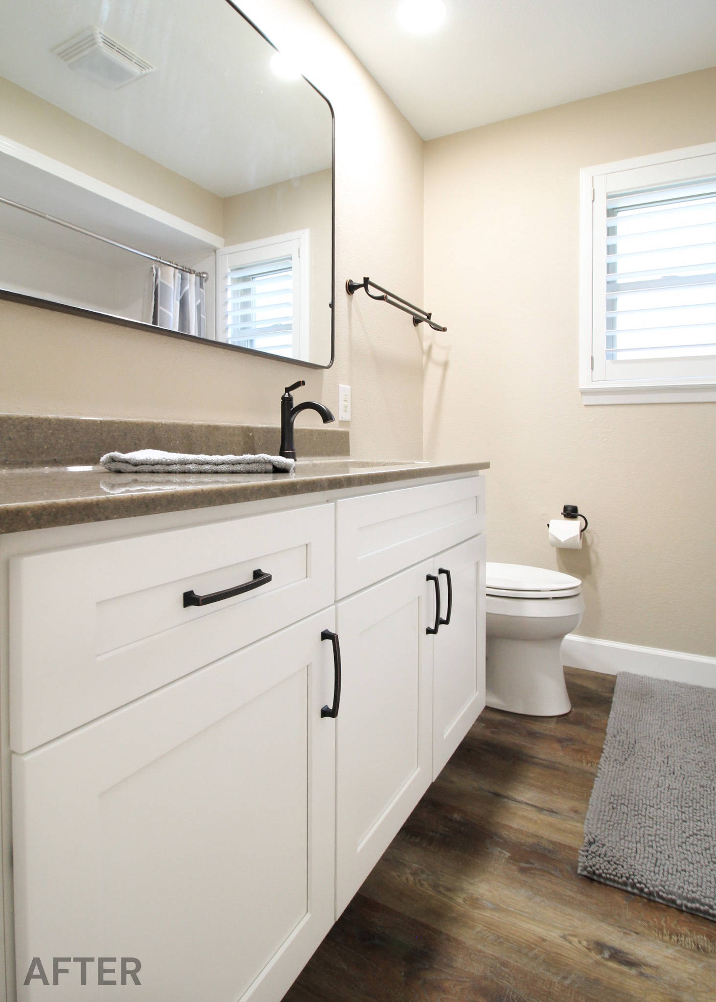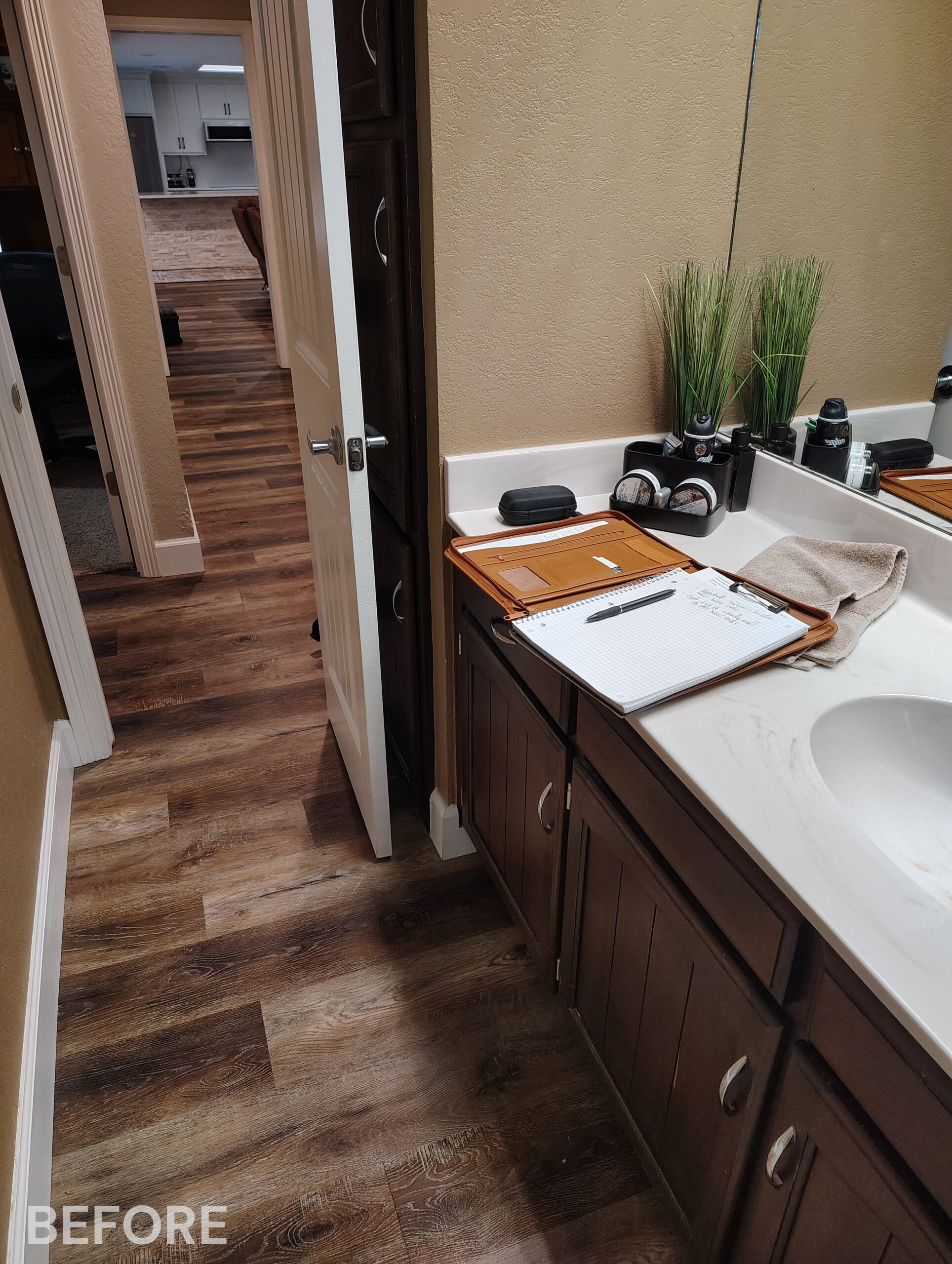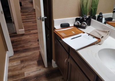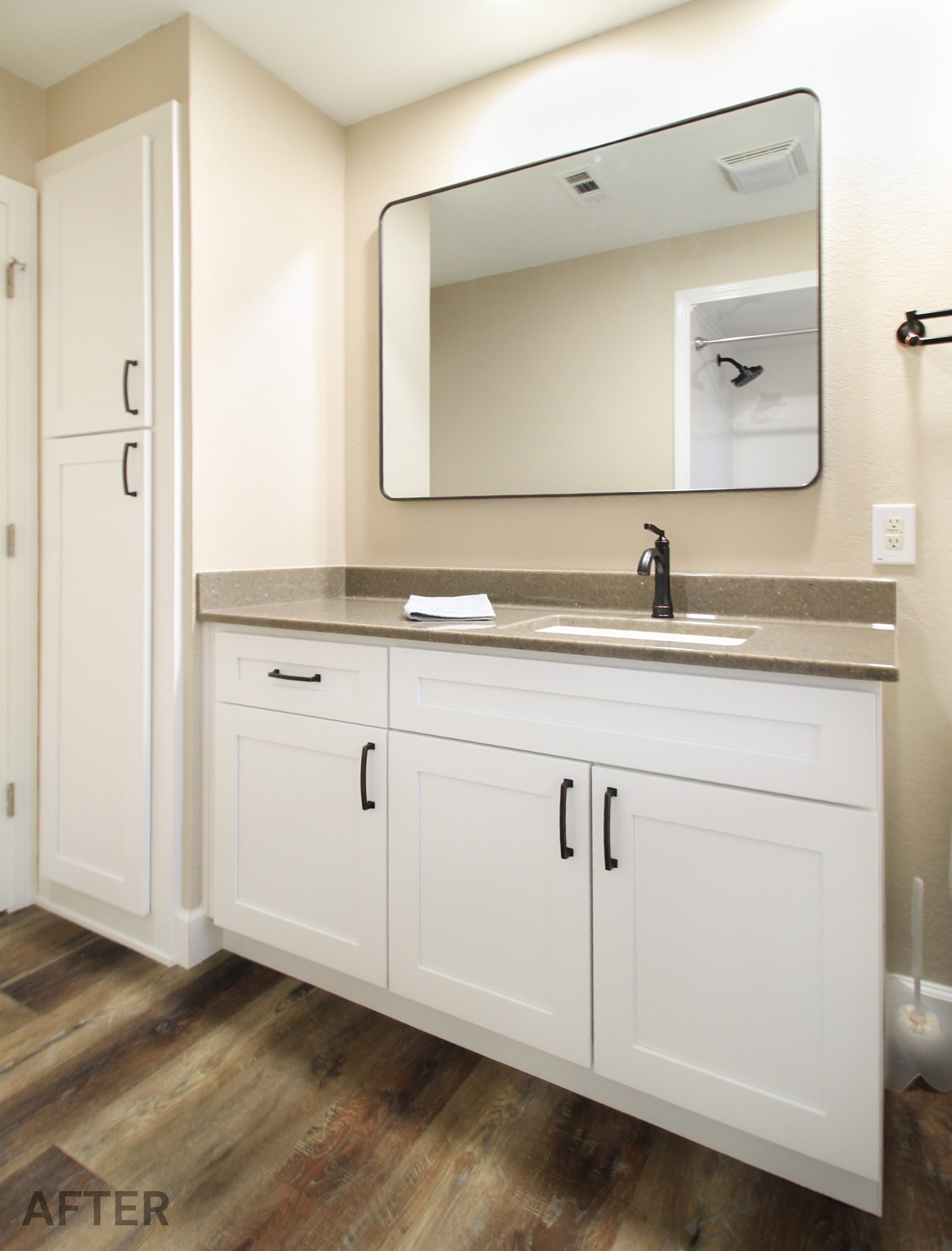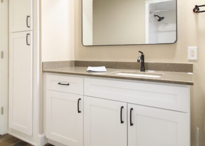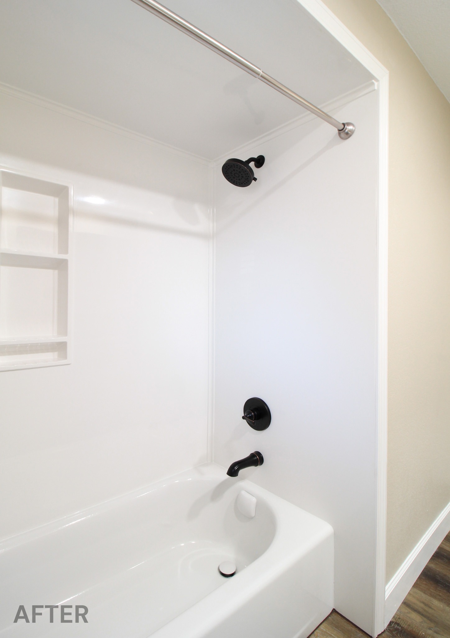 We had the pleasure of remodeling this Mansfield client’s kitchen last year, and were thrilled when they reached out again, this time to update their guest bathroom. We replaced the old tub surround with an Onyx system, a durable solid-surface material that includes built-in shampoo shelves. The countertops were updated using the same material in a complementary color, and the old vanity and linen cabinets were swapped for new, ready-made ones. The homeowners wanted the bathroom to reflect the warm, rustic feel of the rest of their home, so we kept the existing LVP flooring and installed new bronze fixtures and hardware to add contrast and character. We’re so glad we could help bring their vision to life and create a space that feels cohesive and inviting!