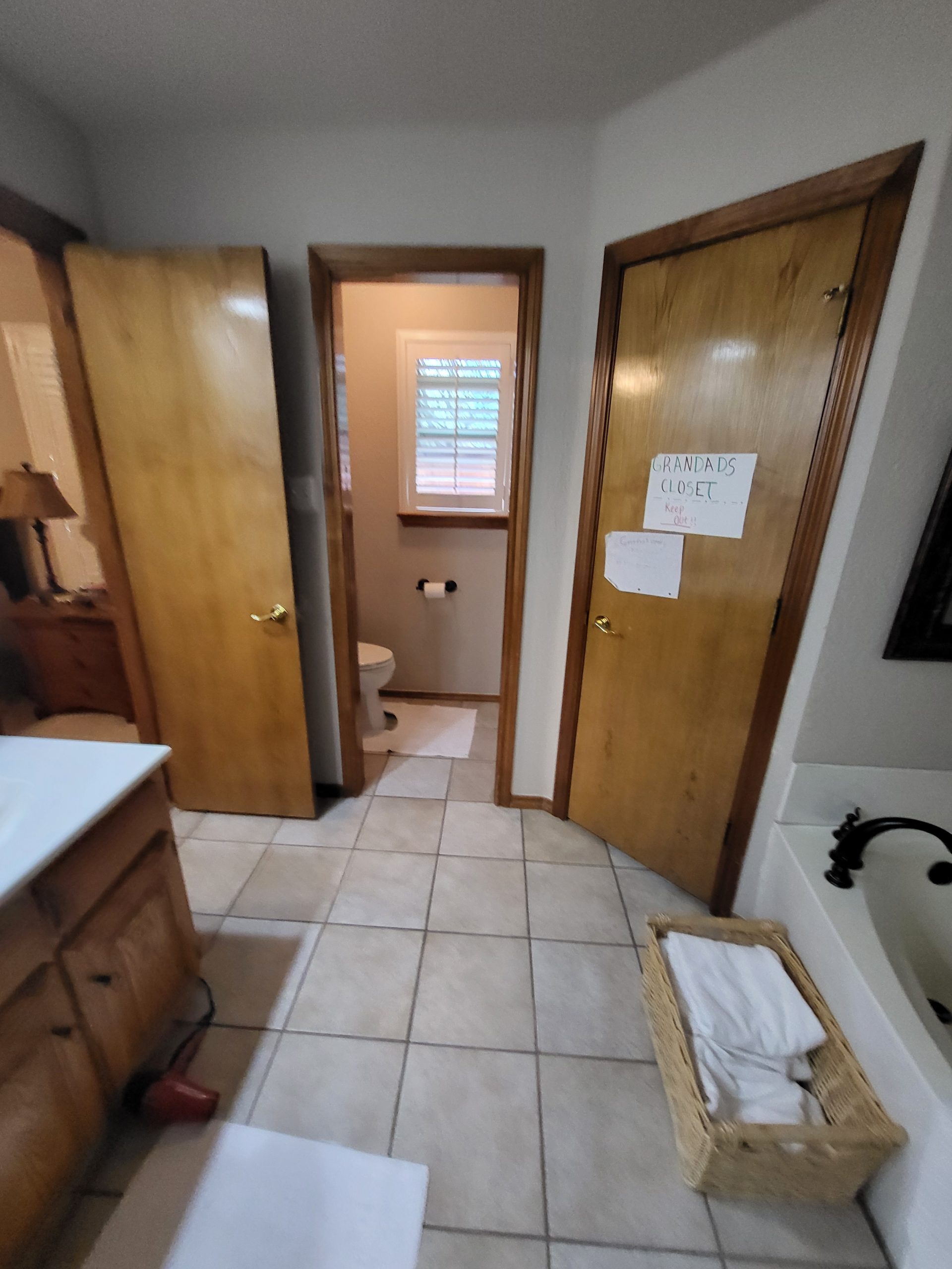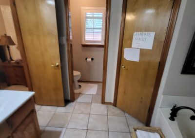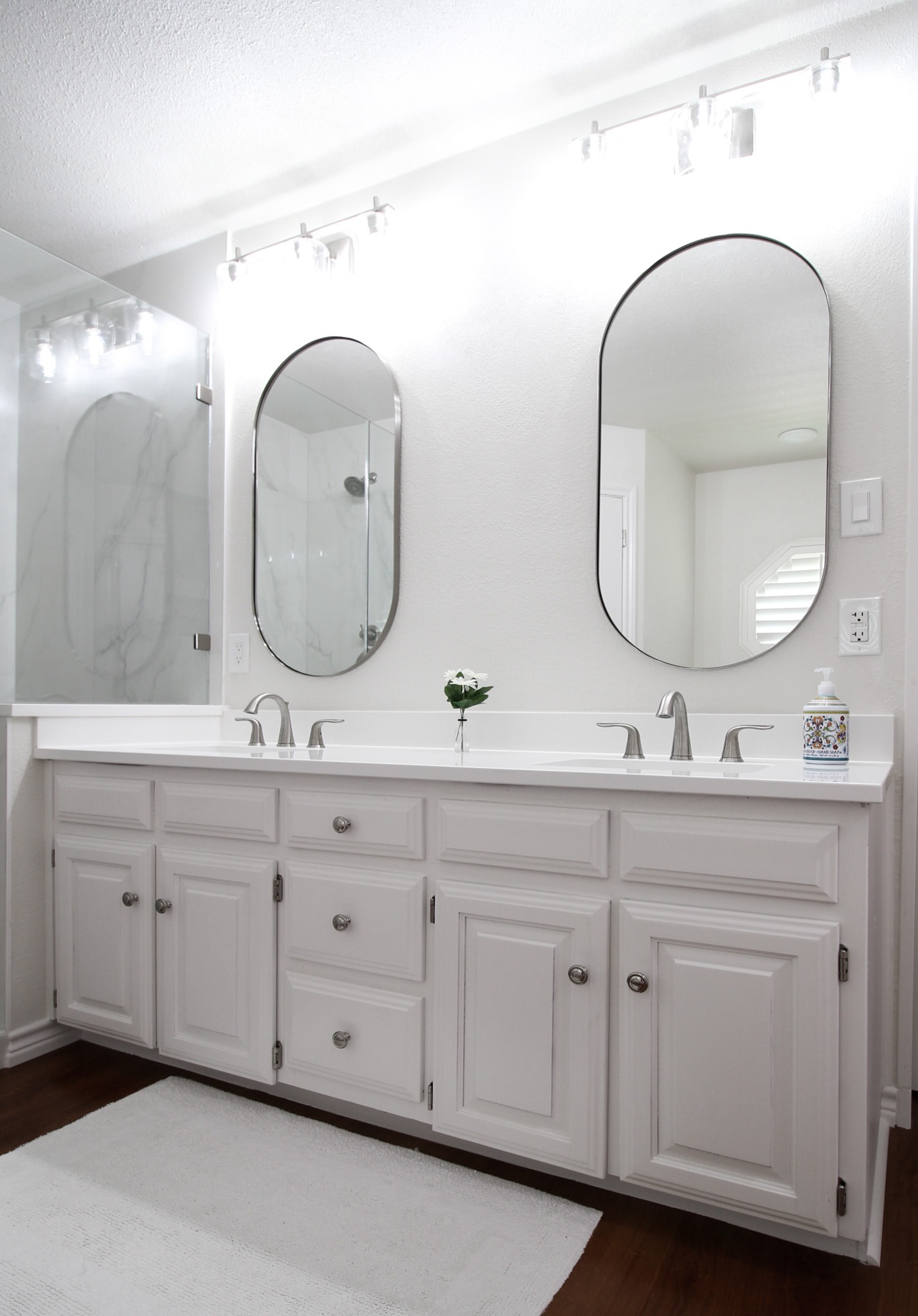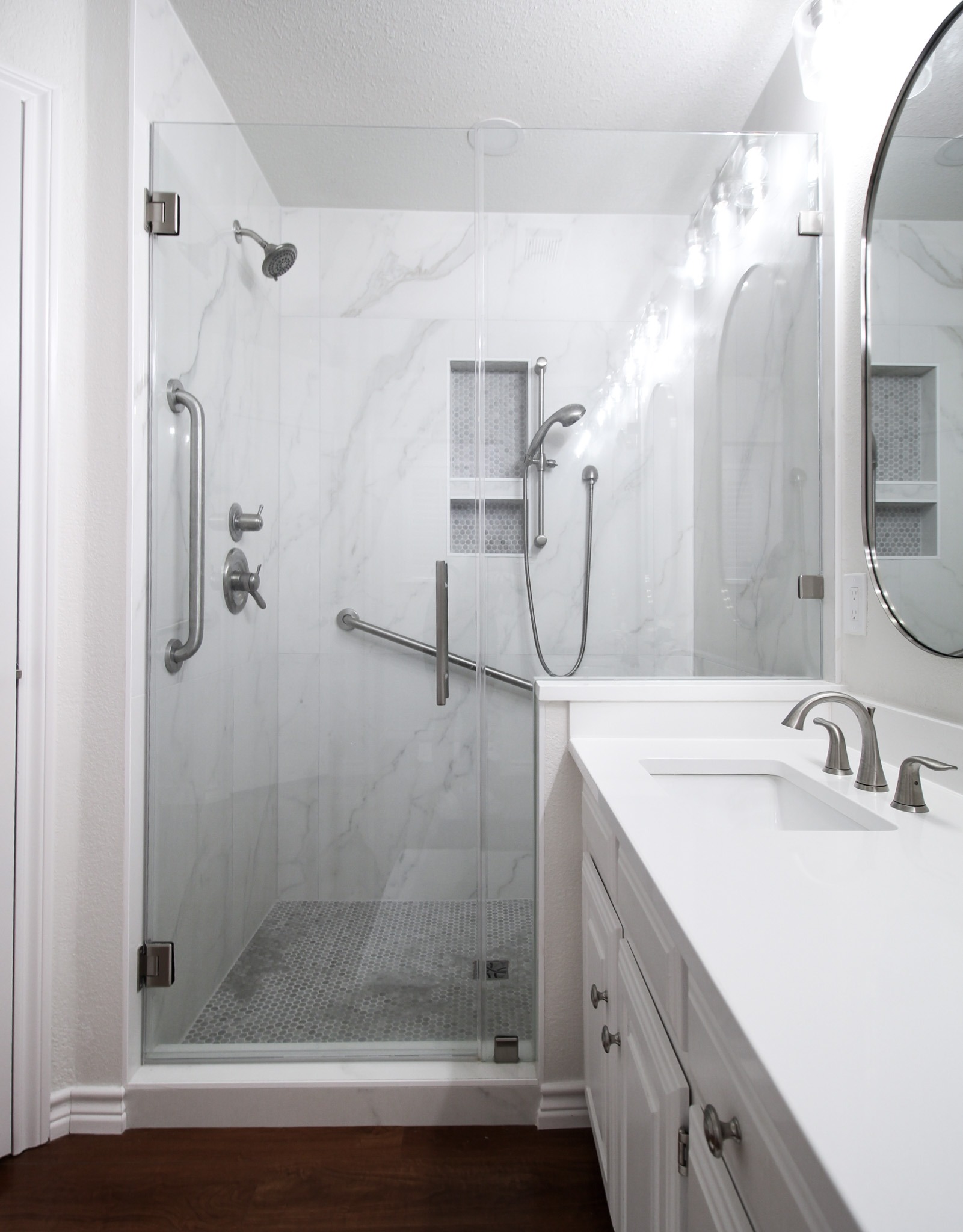 This aging couple in North Richland Hills needed a shower that was more accessible. We helped them brighten up their master bathroom by updating all the materials. They decided to change their alcove tub to a modern, freestanding one and remove the wall that closed off the shower. We installed new LVP flooring, quartz countertops, and tile in the shower. Along with new paint on the walls and existing vanity cabinets, we think these changes made a big difference.